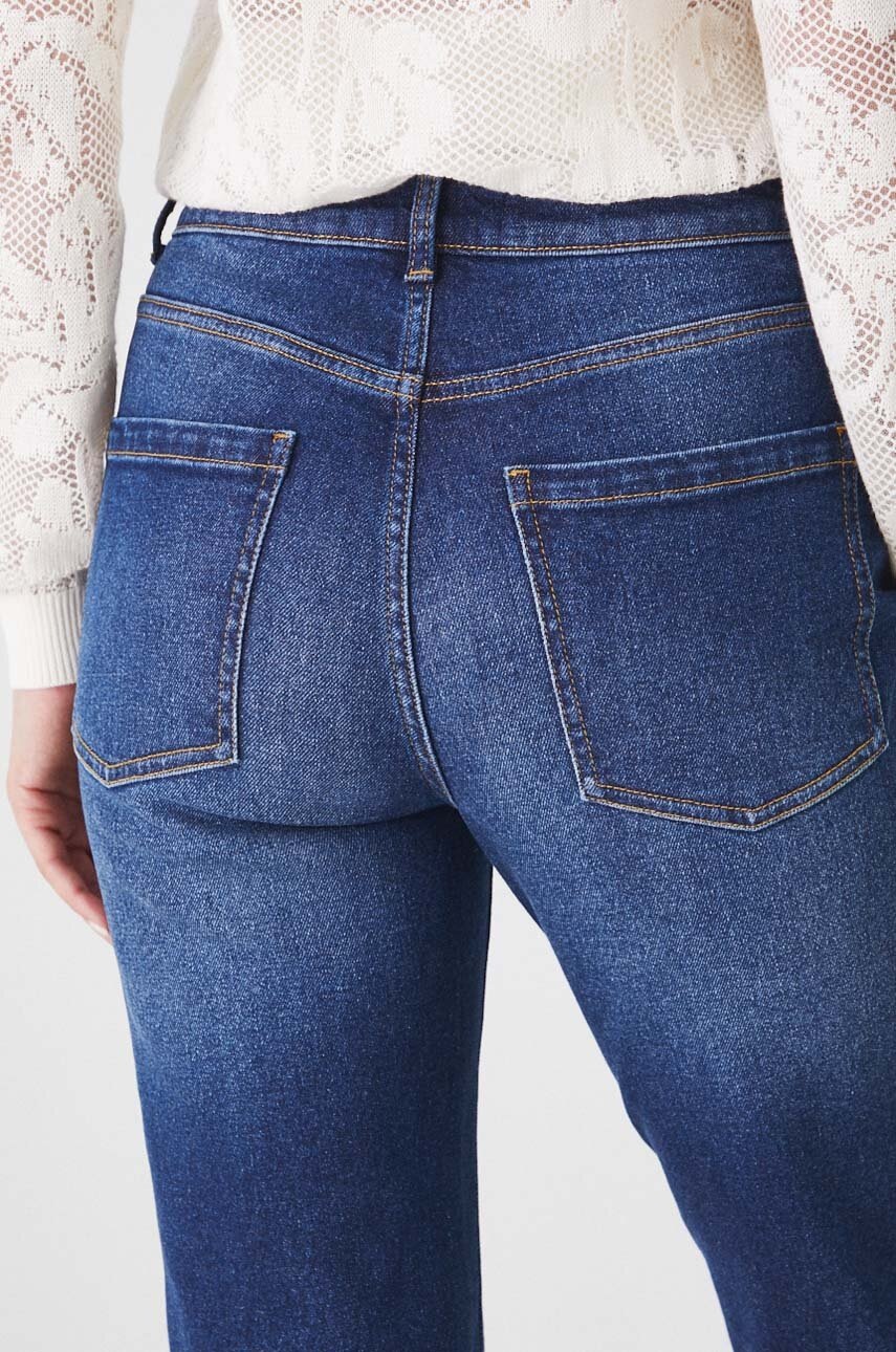 - Fason mom fit - jeansy inspirowane stylem vintage, o luźniejszym kroju, szczególnie w okolicy bioder i delikatnie zwężających się nogawkach. Krój mom fit optycznie zwęża talię oraz podkreśla partię ud, zachowując przy tym komfort noszenia.