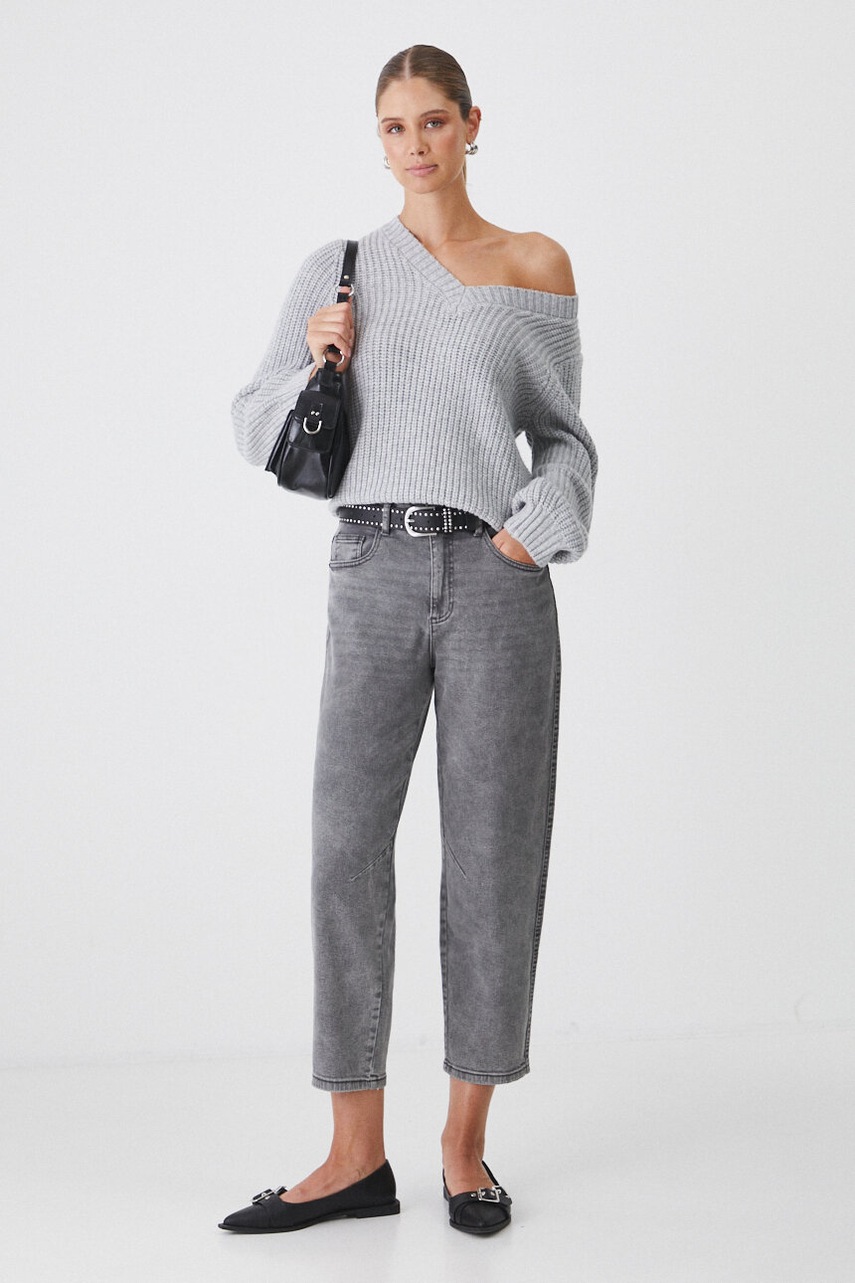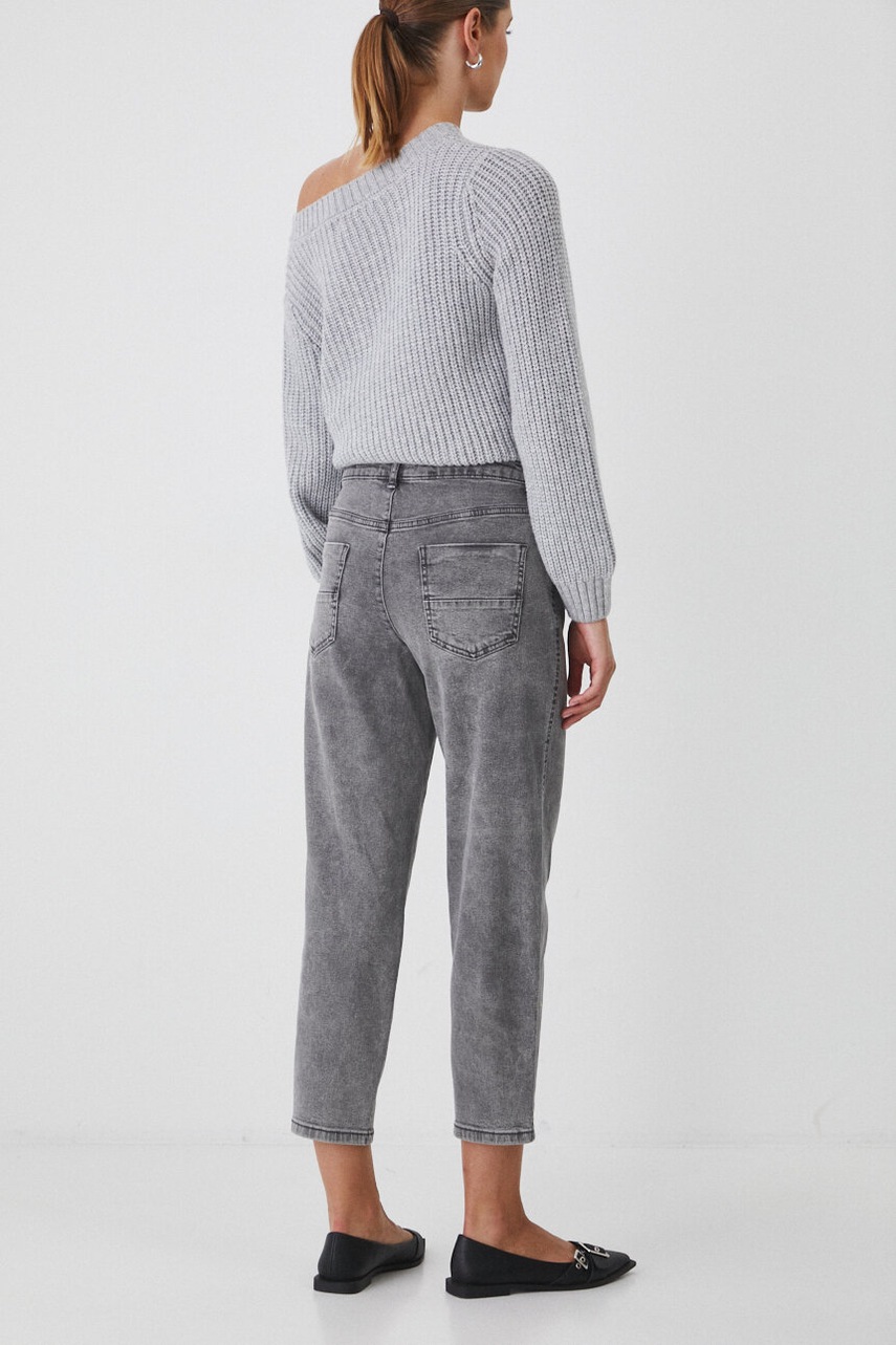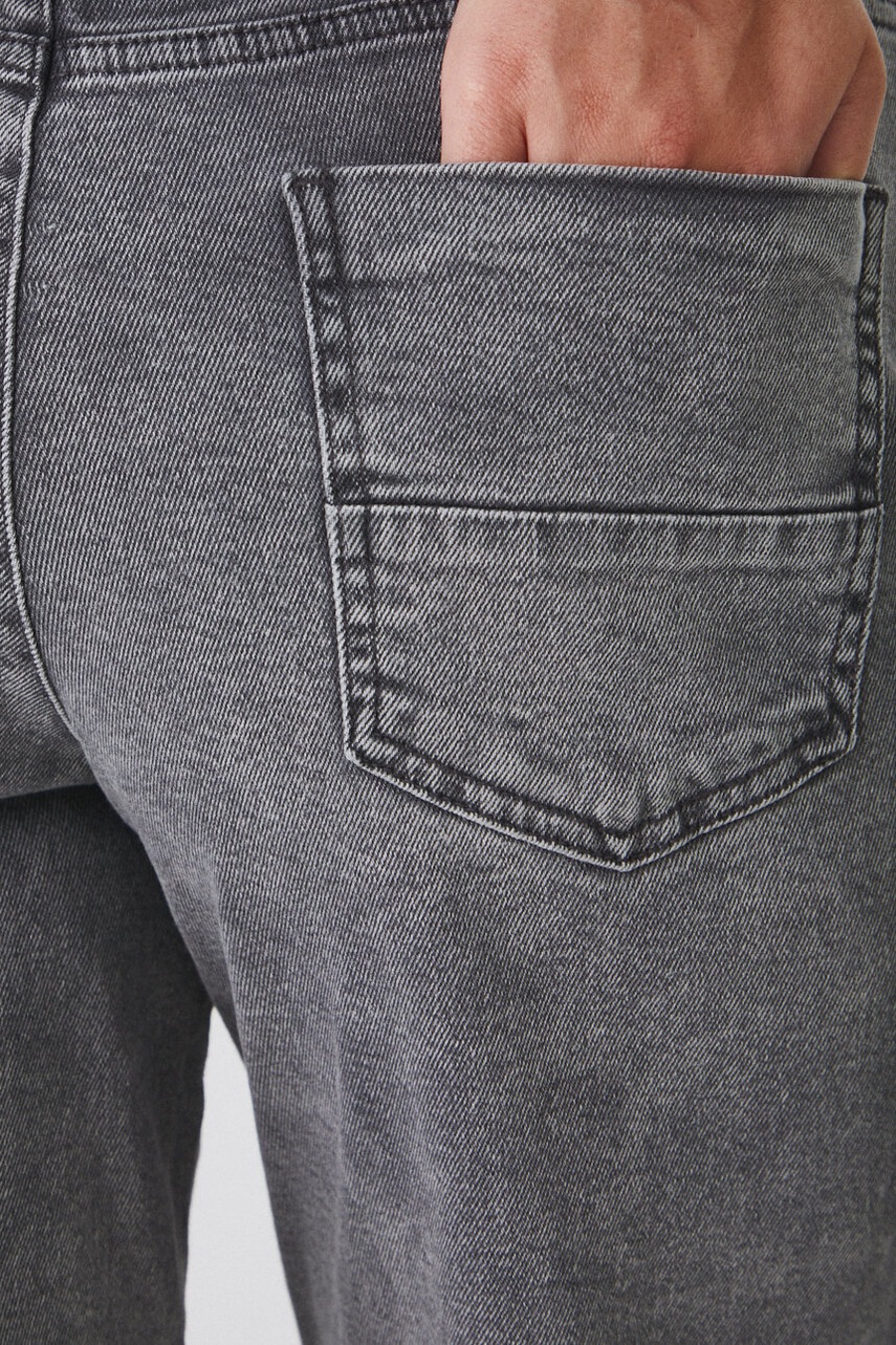 - Fason slouchy - jeansy charakteryzują się oversize?owym krojem, zakładkami na linii bioder oraz szeroką nogawką, która zwęża się przy samej kostce. Ich luźniejsza forma nie krępuje ruchów, gwarantując wygodę i komfort noszenia.