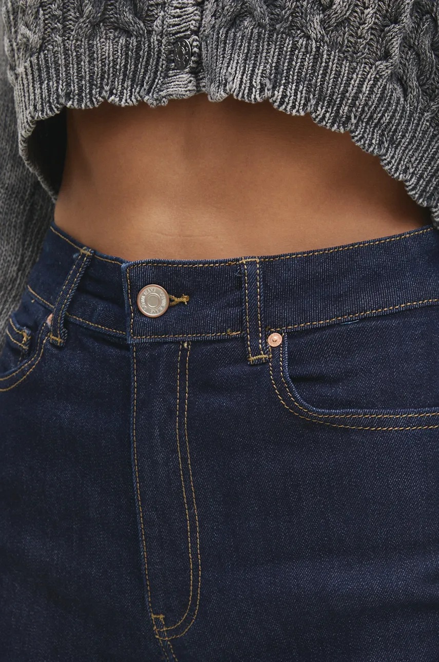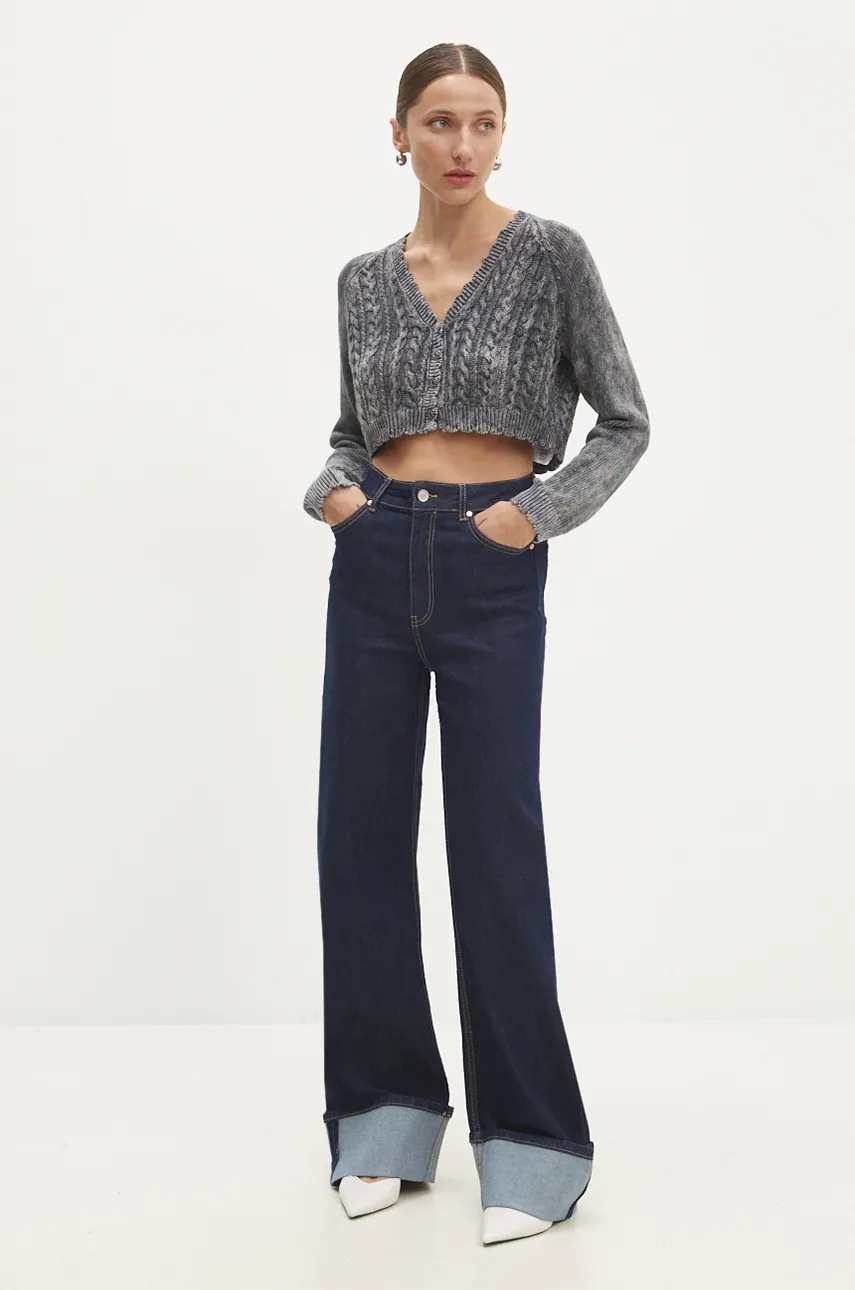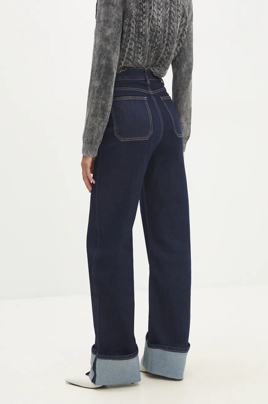 - Model z podwyższoną talią i zapięciem na guzik i suwak.
