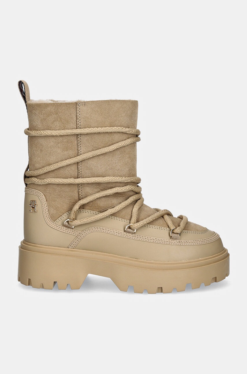 Tommy Hilfiger śniegowce REAL SHEARLING LACE-UP SNOWBOOT kolor beżowy FW0FW08085
