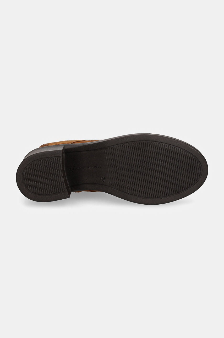Tommy Hilfiger botki zamszowe SUEDE MID HEEL LACEUP LOGOTAPE damskie kolor brązowy na słupku FW0FW08090
