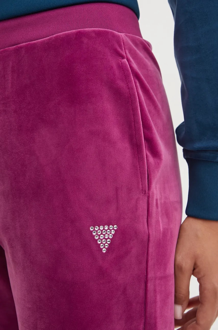 Guess spodnie dresowe kolor fioletowy z aplikacją