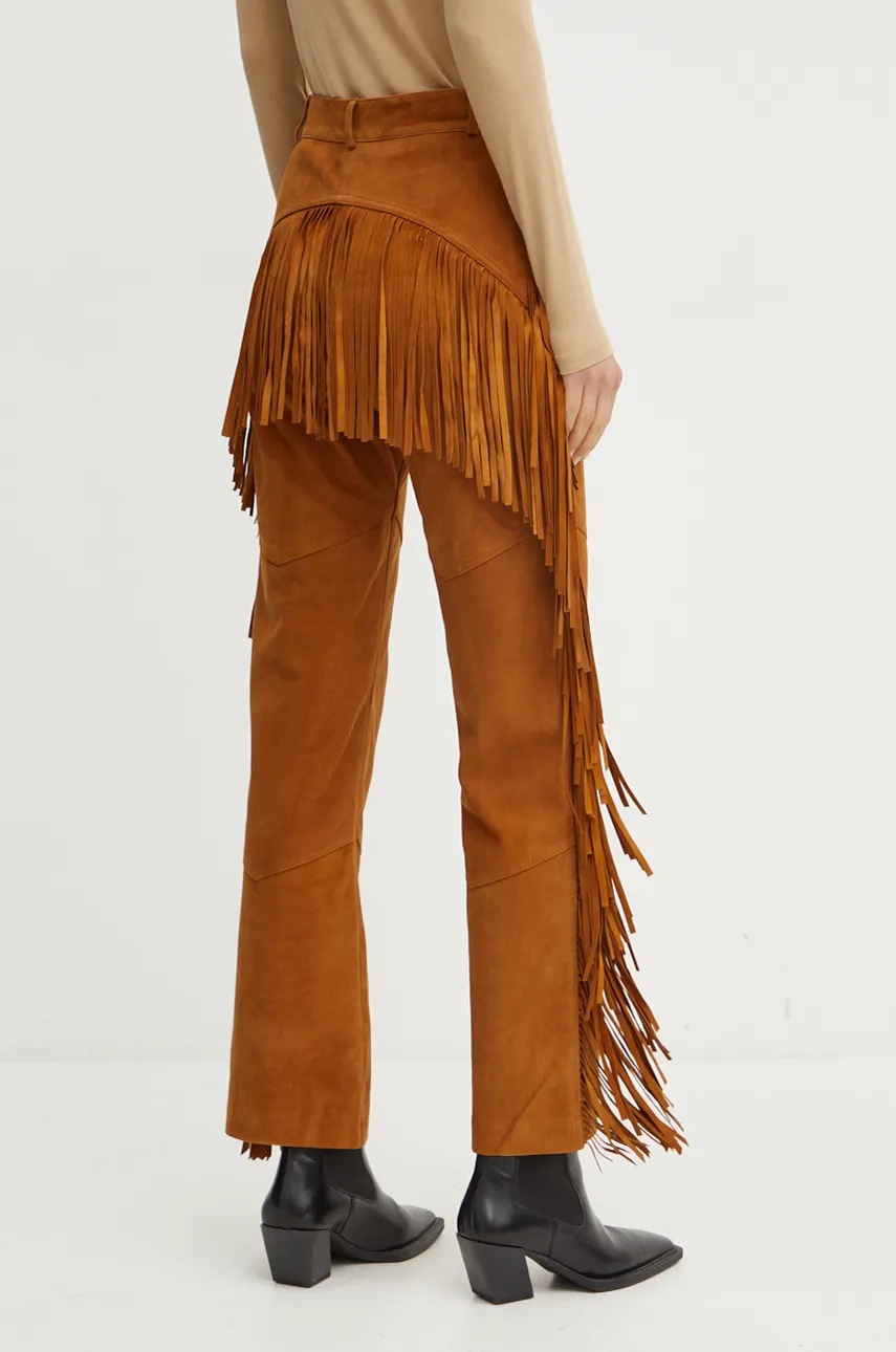 Weekend Max Mara spodnie zamszowe Joy Road x Lucy Hale kolor brązowy proste high waist 2425436016600