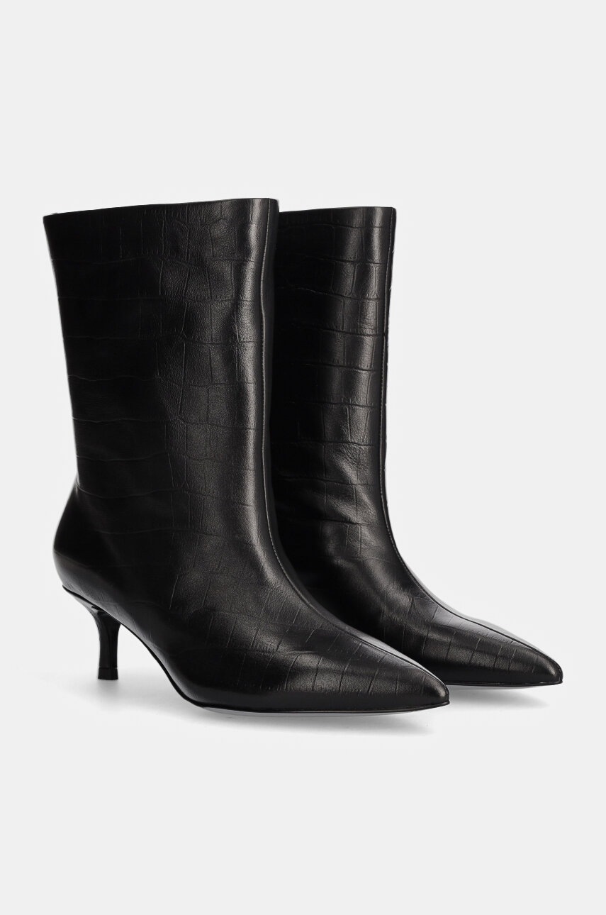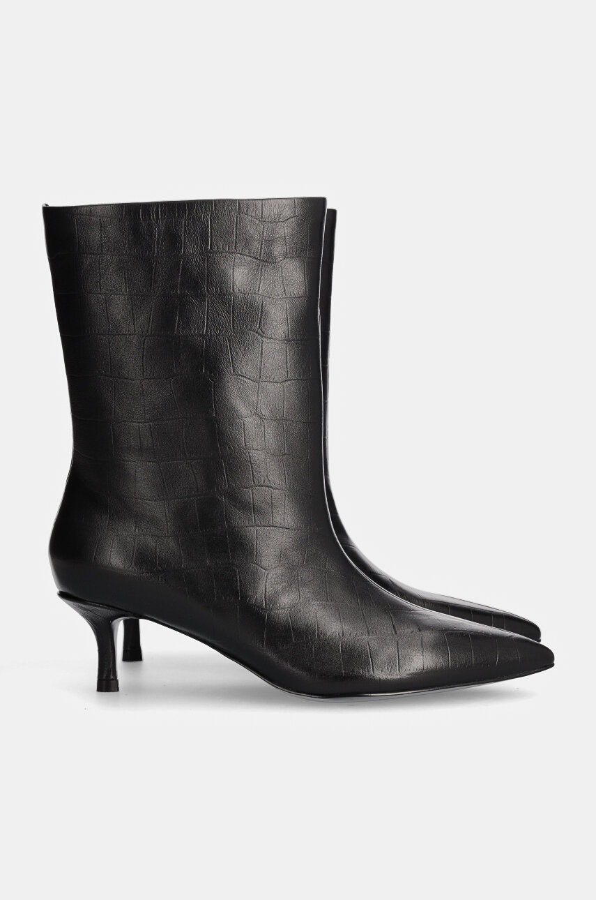 Answear Lab botki skórzane damskie kolor czarny na szpilce lekko ocieplone