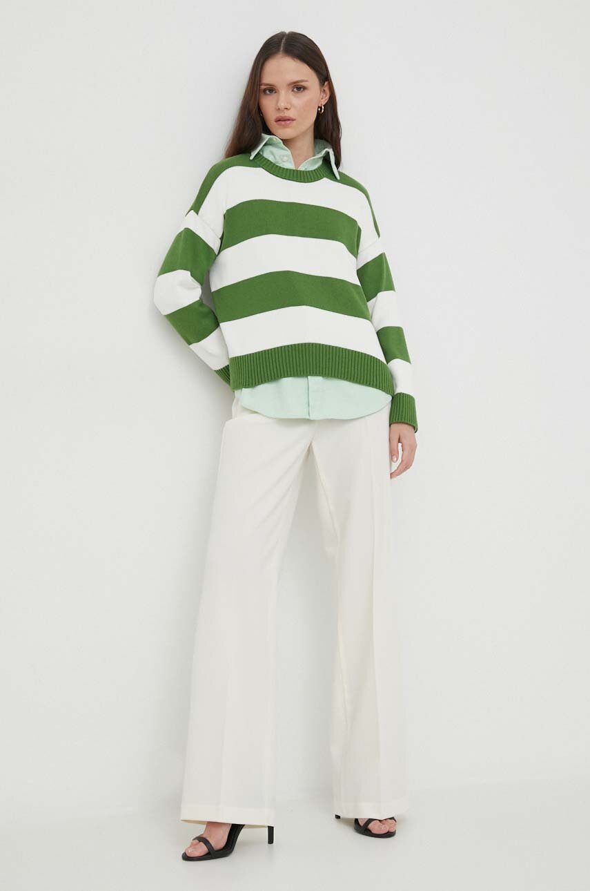 - Model z podwyższoną talią i zapięciem na suwak, guzik i haftkę.