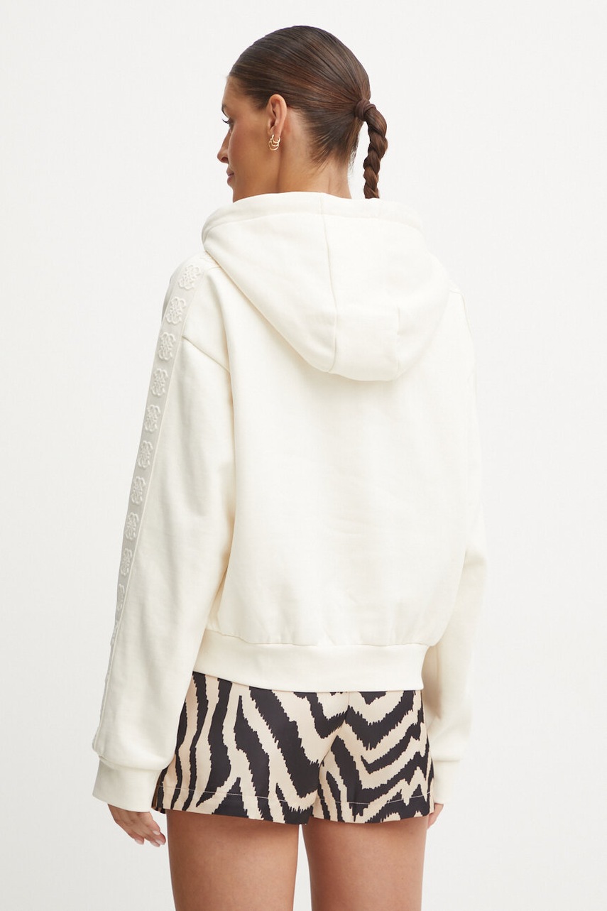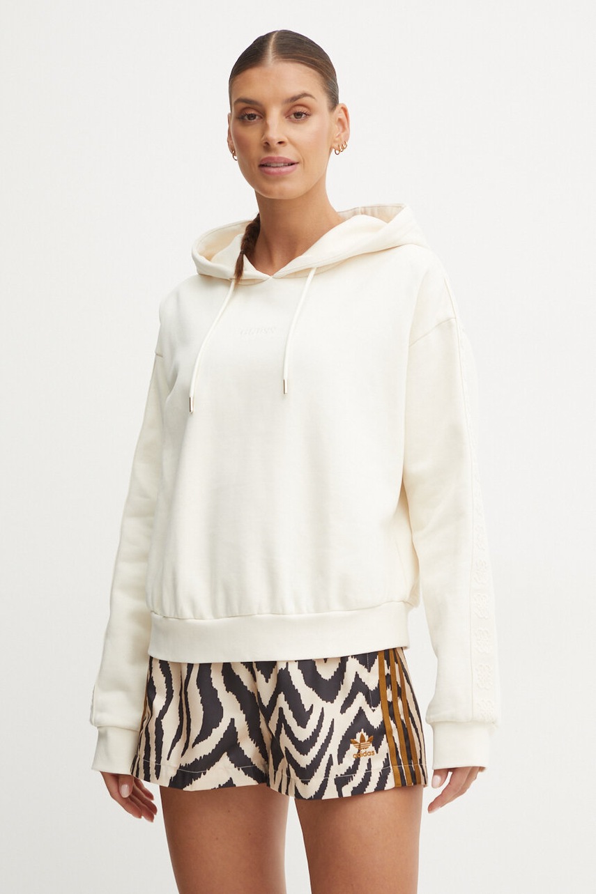 Guess bluza bawełniana STACIE damska kolor beżowy z kapturem z aplikacją V4BQ00 KC5O0