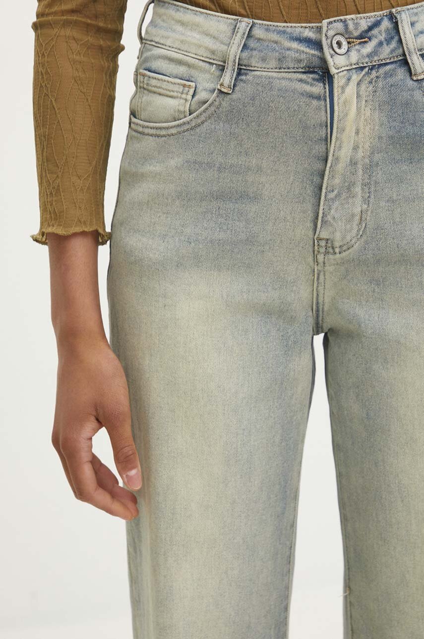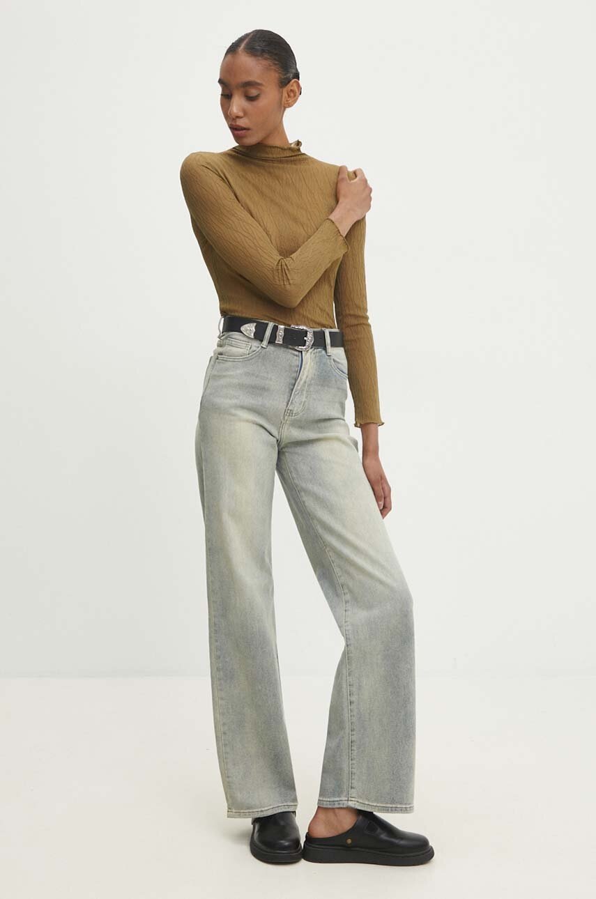 - Model z podwyższoną talią i zapięciem na guzik i suwak.