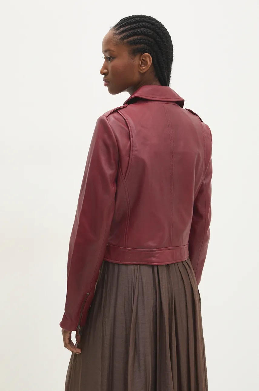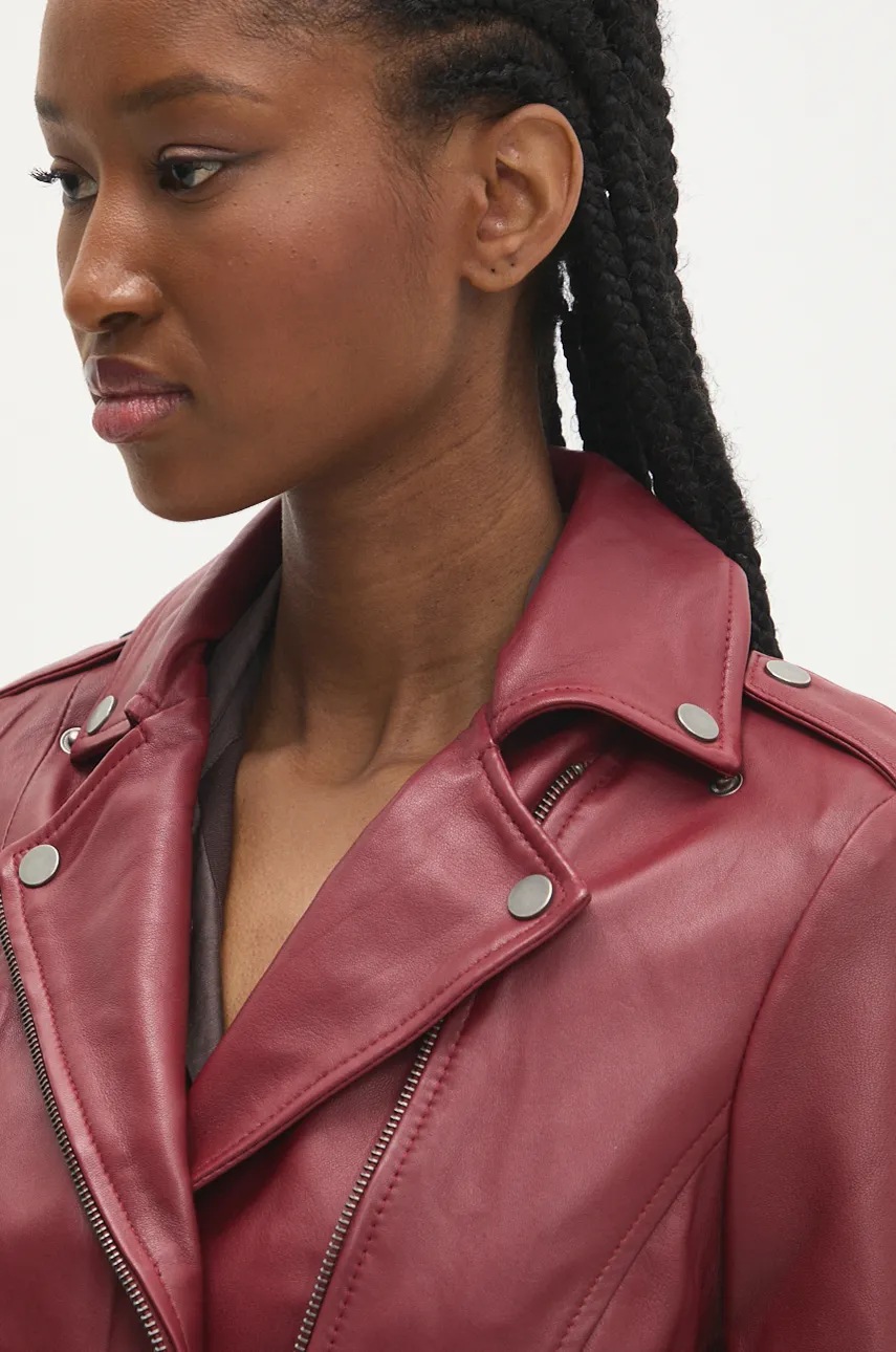 Answear Lab ramoneska skórzana damska kolor czerwony przejściowa