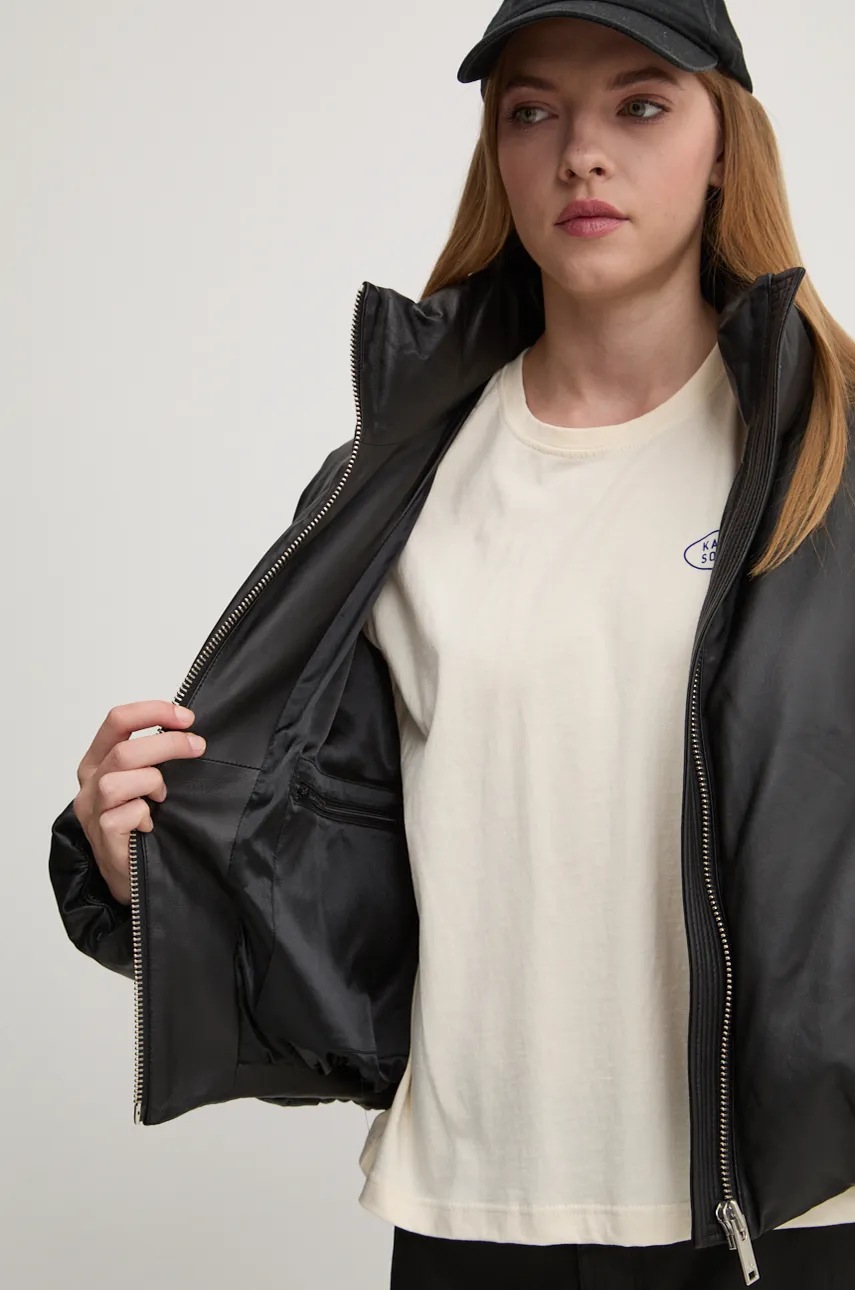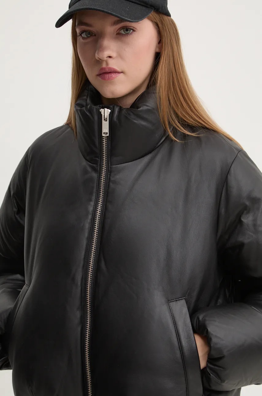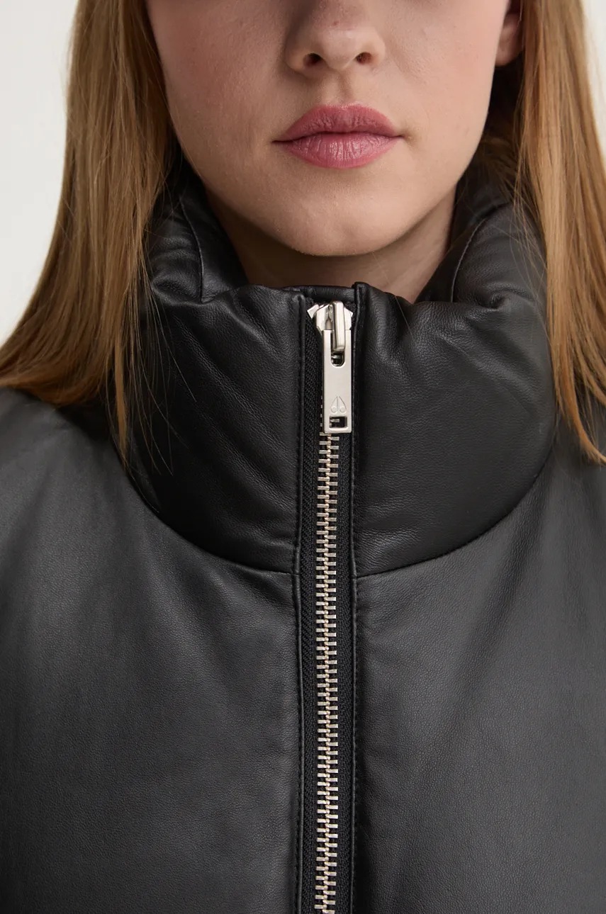 MOOSE KNUCKLES kurtka skórzana puchowa kolor czarny zimowa M34LL317