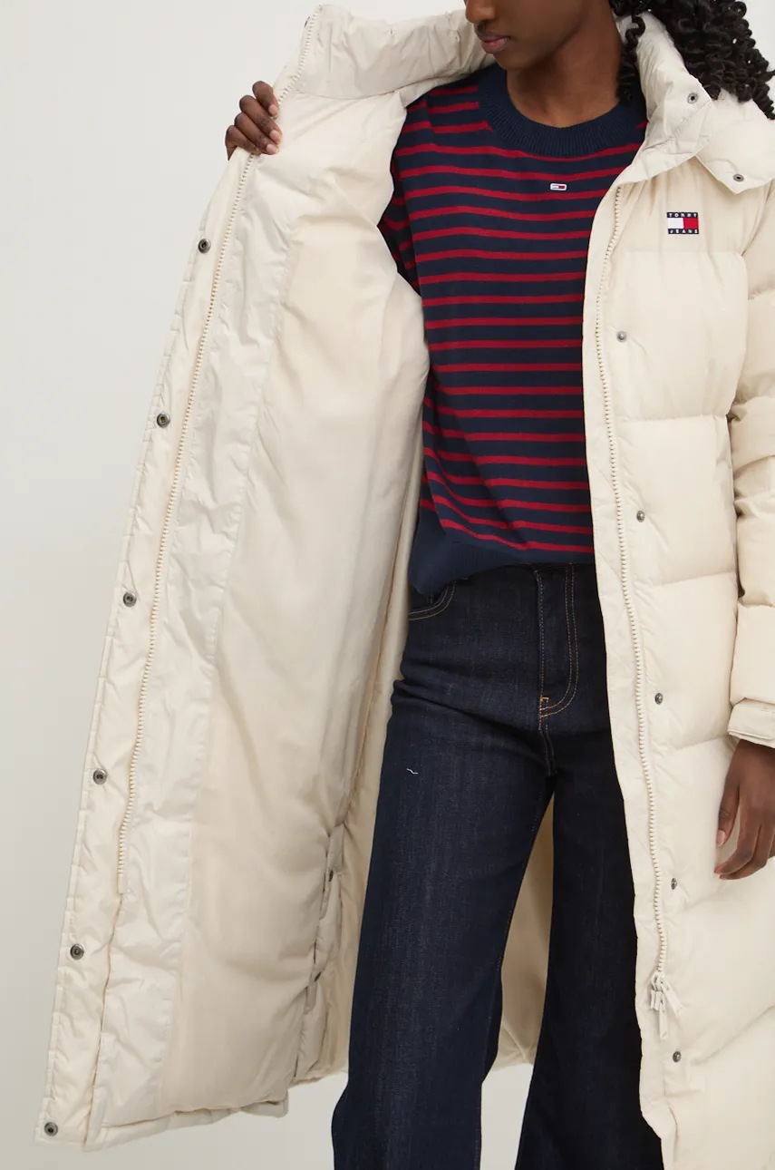 Tommy Jeans kurtka puchowa damska kolor beżowy zimowa oversize DW0DW18860