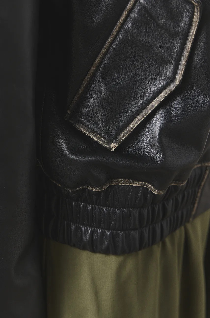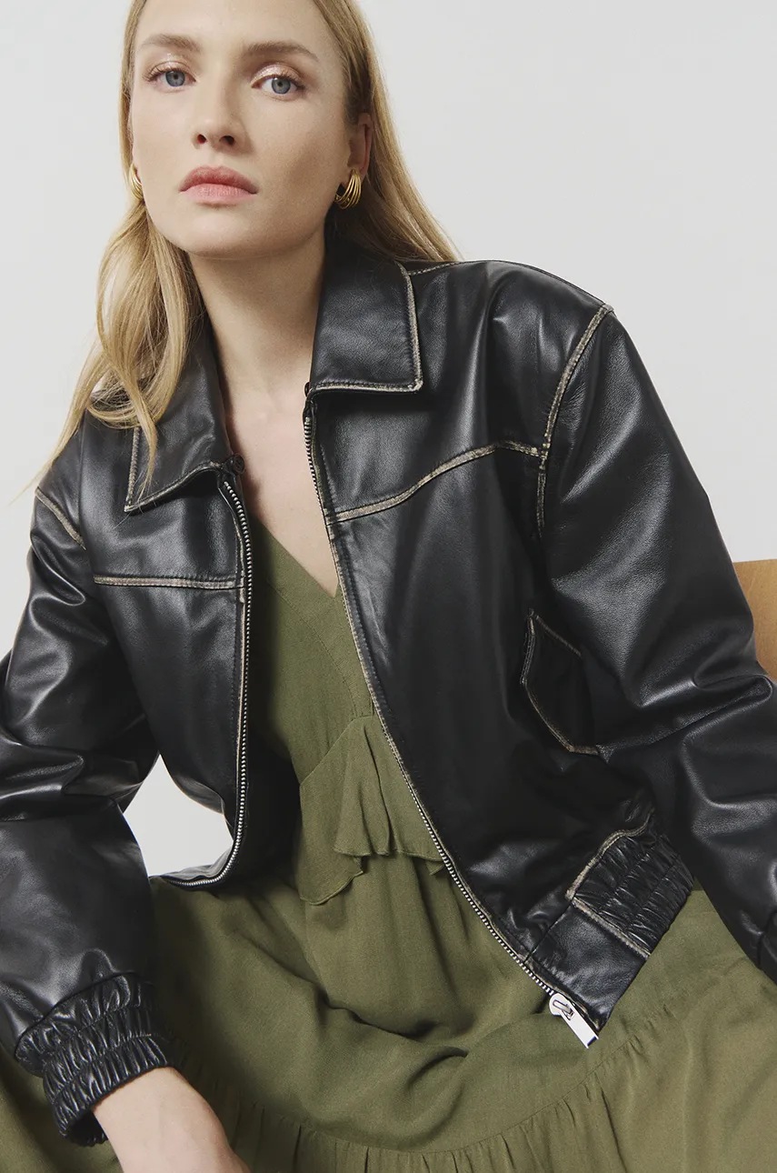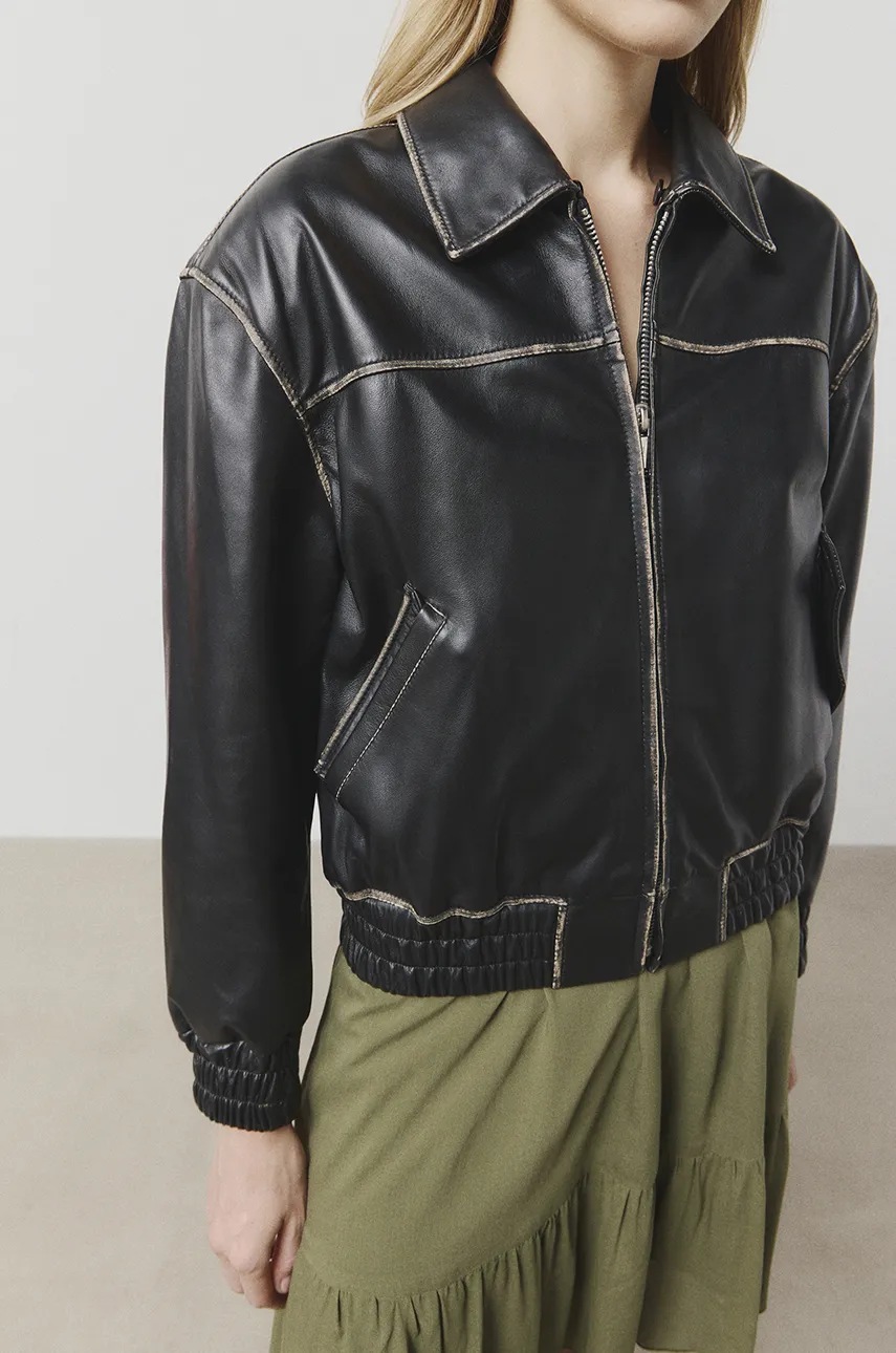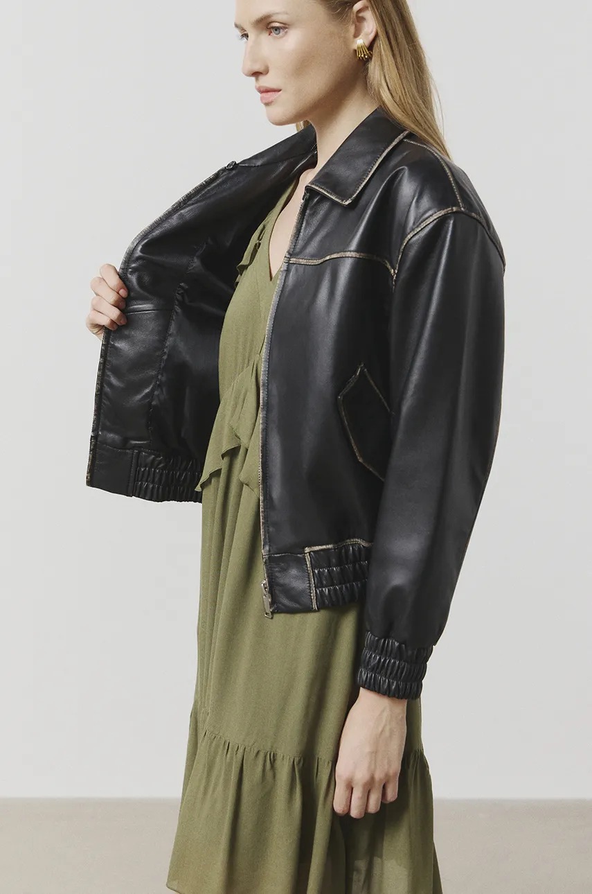 Answear Lab kurtka skórzana damska kolor czarny przejściowa oversize