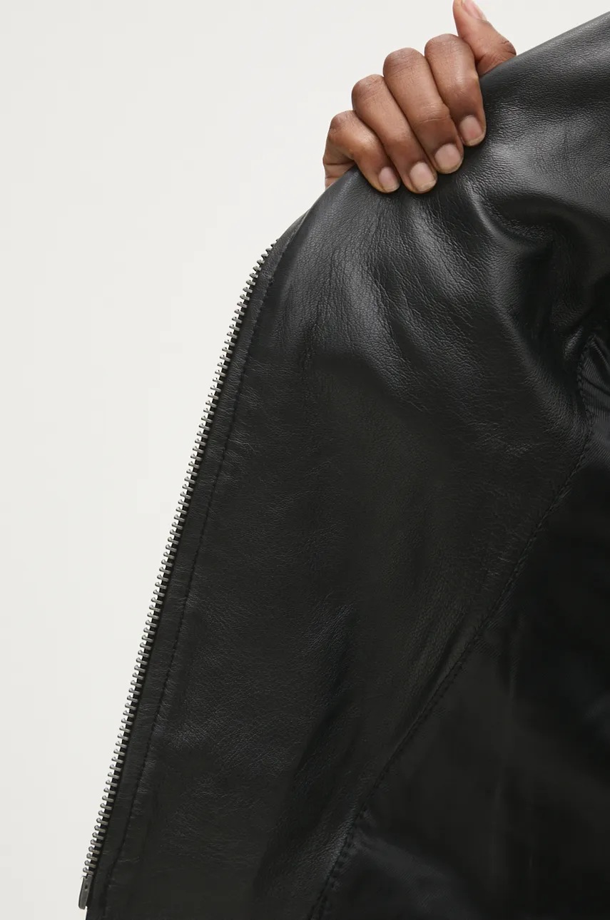 Answear Lab ramoneska skórzana damska kolor czarny przejściowa oversize