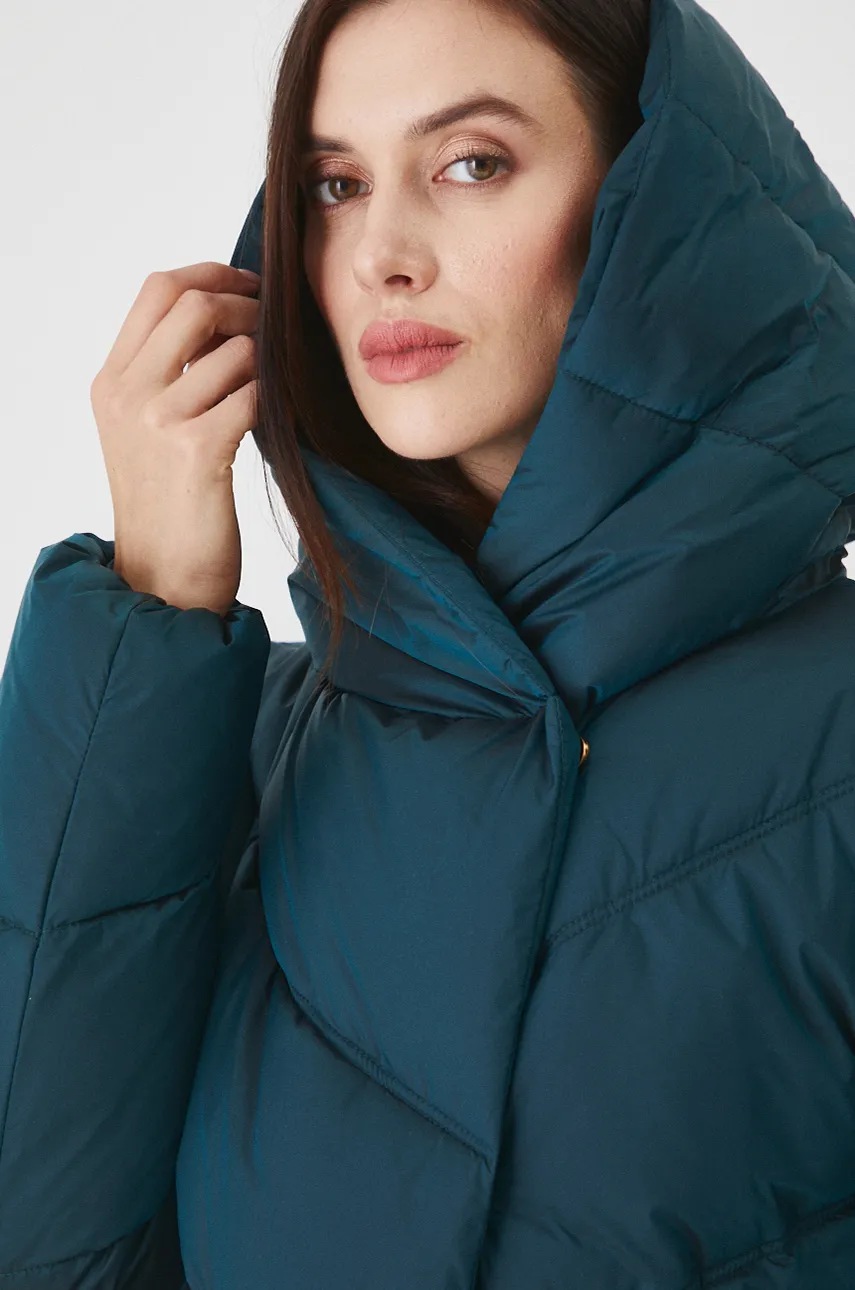- Model z wypełnieniem DuPont? Sorona?, które jest doskonałą alternatywą dla naturalnego puchu. Wypełnienie to charakteryzuje się dobrą izolacją termiczną i zachowuje ciepłotę ciała, przy tym jest lekkie i wytrzymałe.