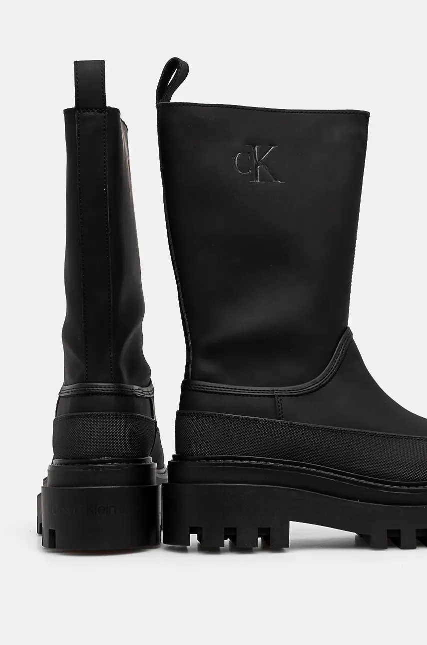 Calvin Klein Jeans kalosze FLATFORM RAINBOOT HIGH MG R damskie kolor czarny YW0YW01559