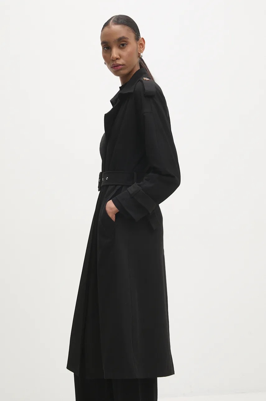 Answear Lab płaszcz damski kolor czarny przejściowy oversize