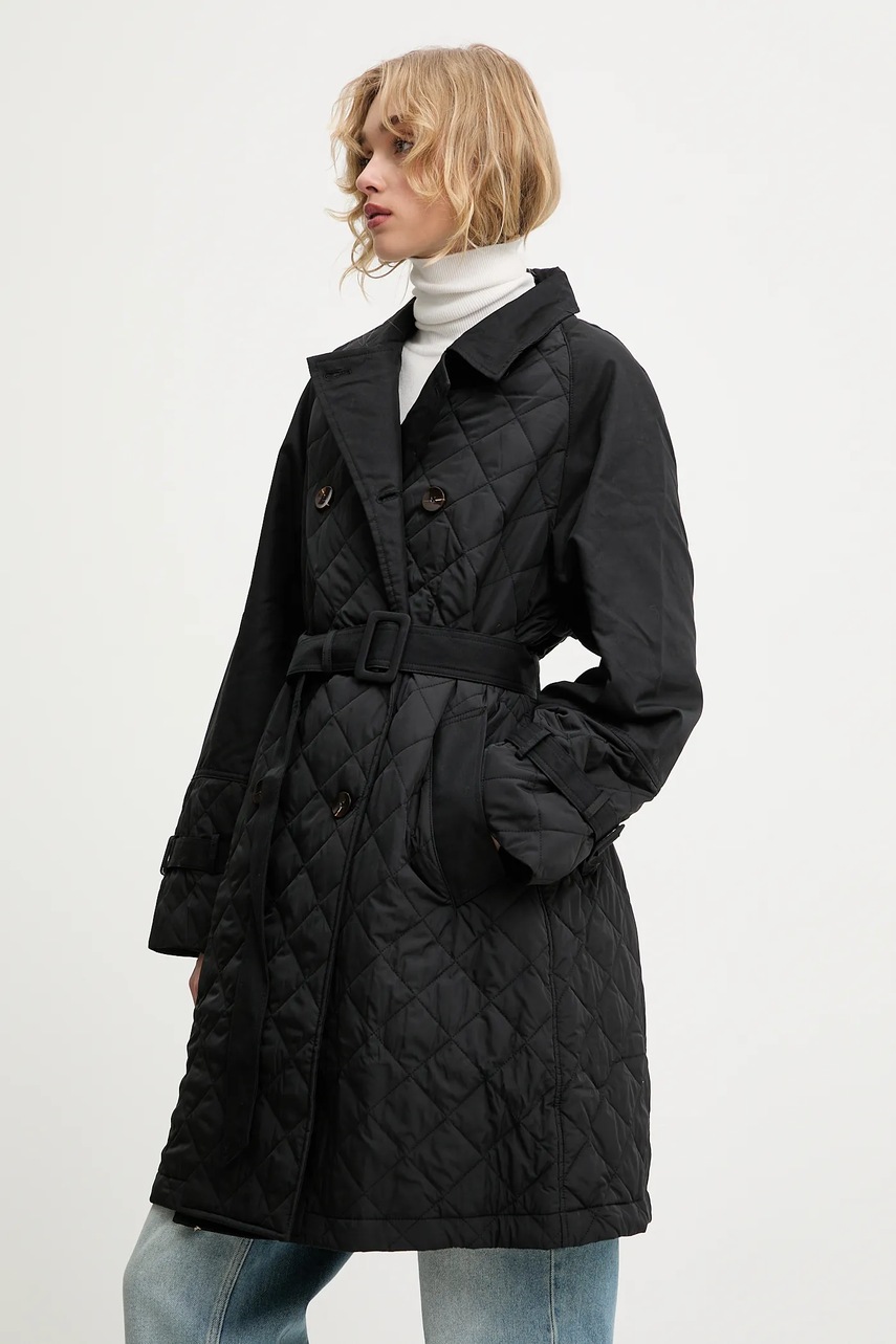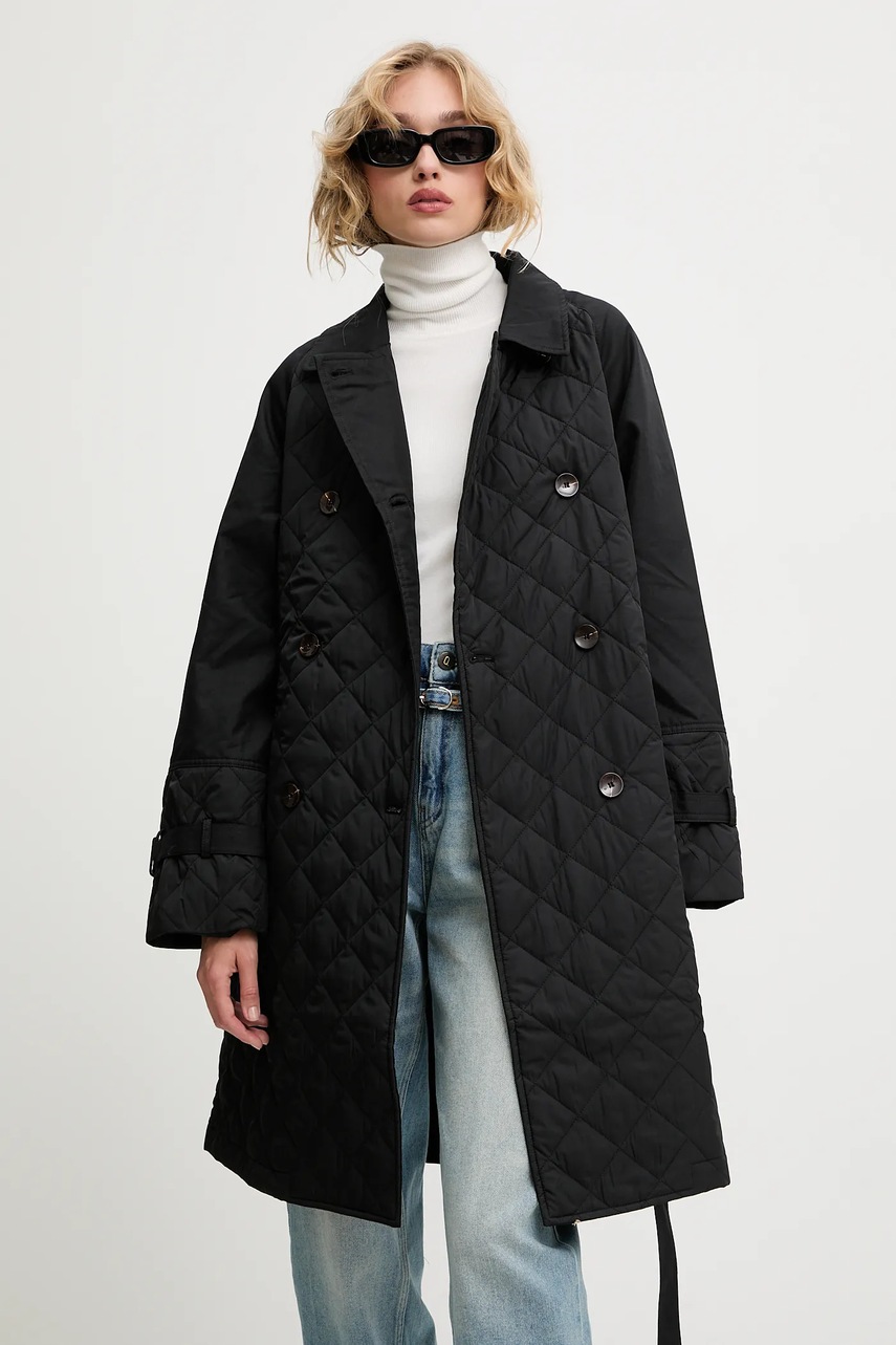 Answear Lab płaszcz damski kolor czarny przejściowy dwurzędowy