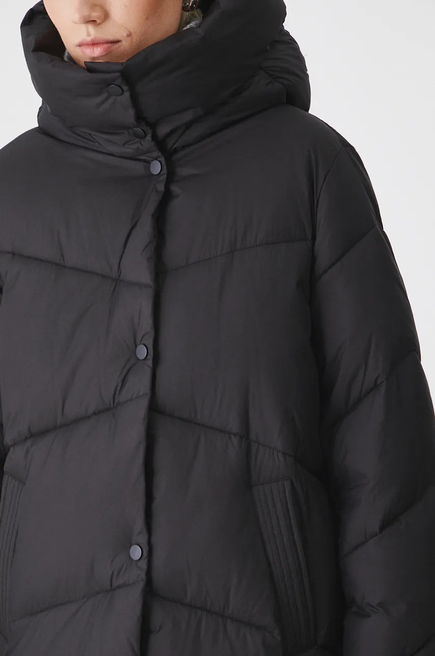 - Model z wypełnieniem DuPont? Sorona?, które jest doskonałą alternatywą dla naturalnego puchu. Wypełnienie to charakteryzuje się dobrą izolacją termiczną i zachowuje ciepłotę ciała, przy tym jest lekkie i wytrzymałe.