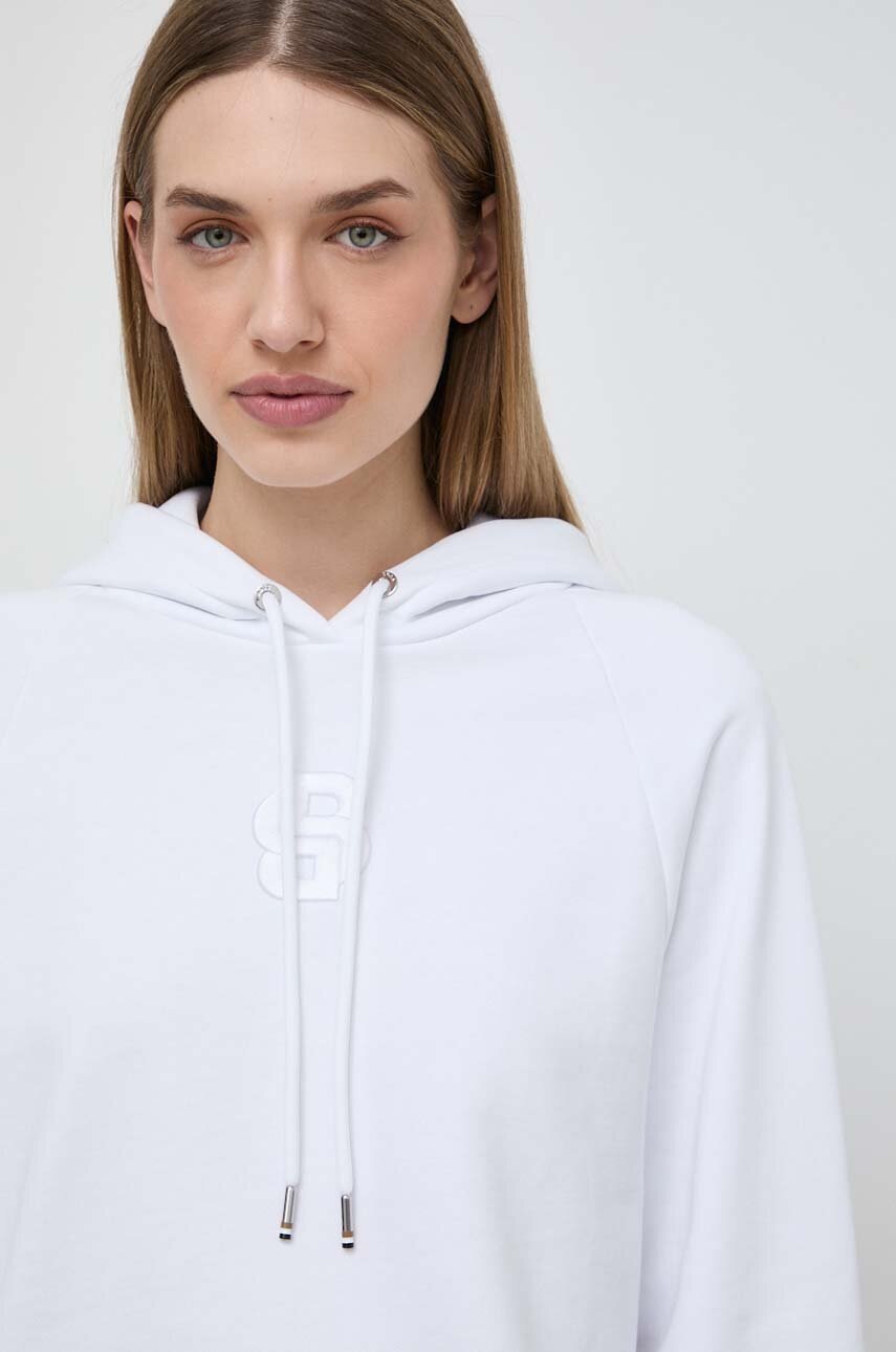 BOSS bluza bawełniana damska kolor biały z kapturem z aplikacją 50516123