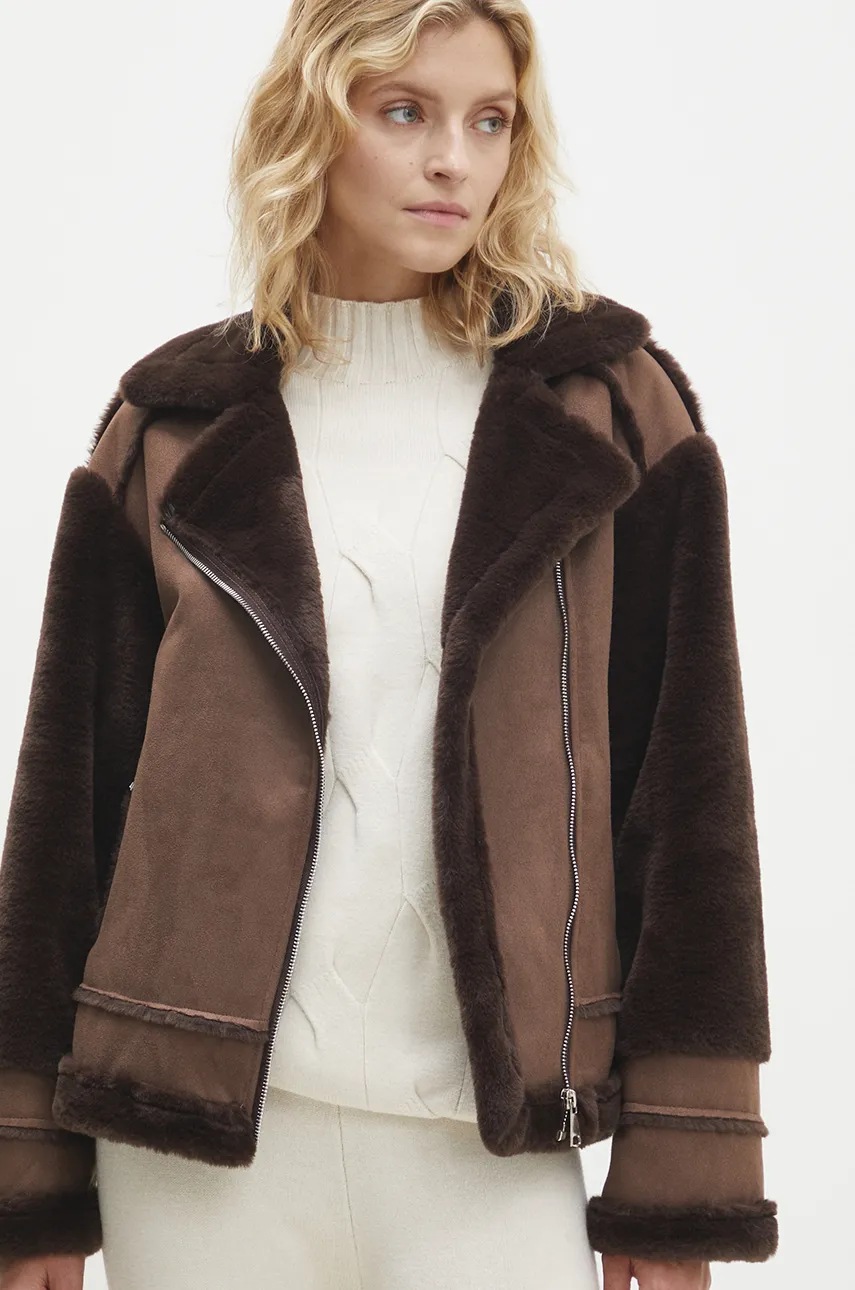 Answear Lab kurtka damska kolor brązowy przejściowa