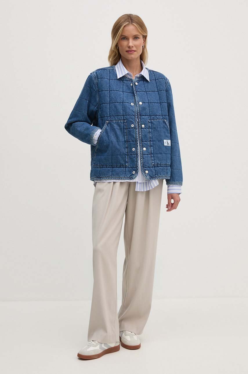 Calvin Klein Jeans kurtka bawełniana kolor niebieski przejściowa J20J223884
