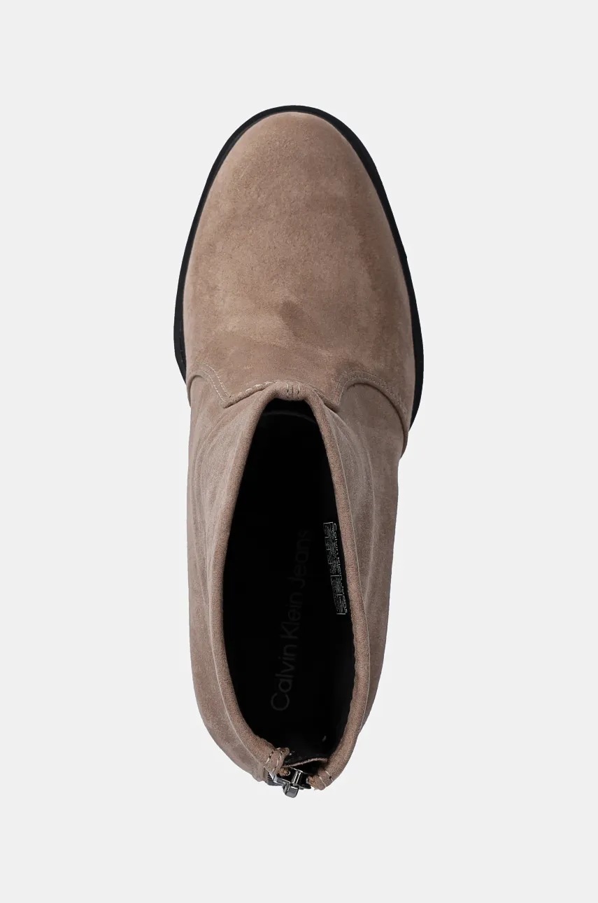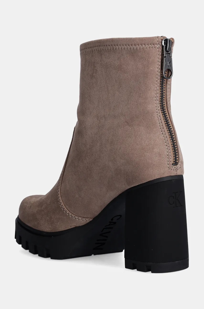 Calvin Klein Jeans botki HEEL PLATFORM ZIP BOOT SS damskie kolor brązowy na słupku YW0YW01601