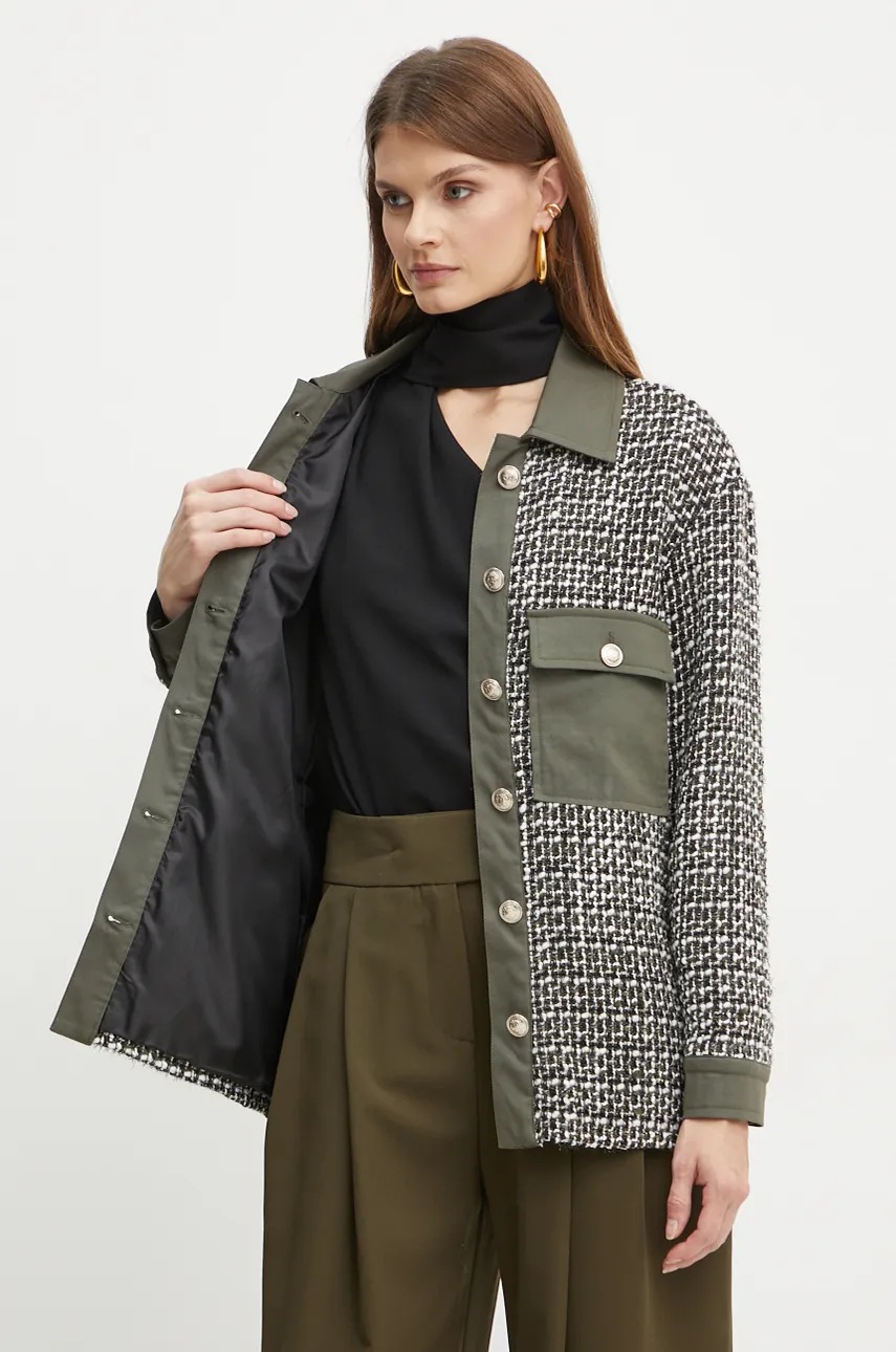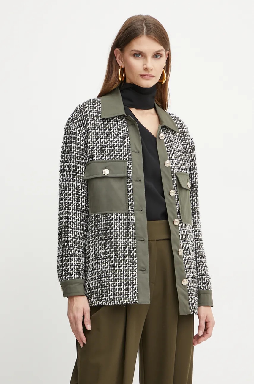 Liu Jo kurtka koszulowa z domieszką wełny kolor zielony przejściowa WF4502 T1805