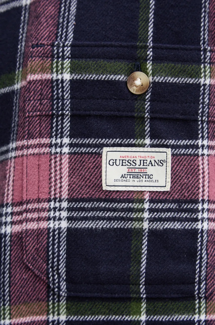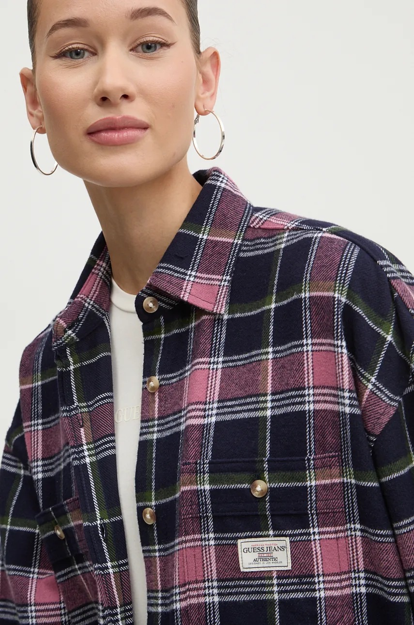 Guess Jeans koszula bawełniana damska kolor granatowy relaxed z kołnierzykiem klasycznym W4BH79 WGMH1