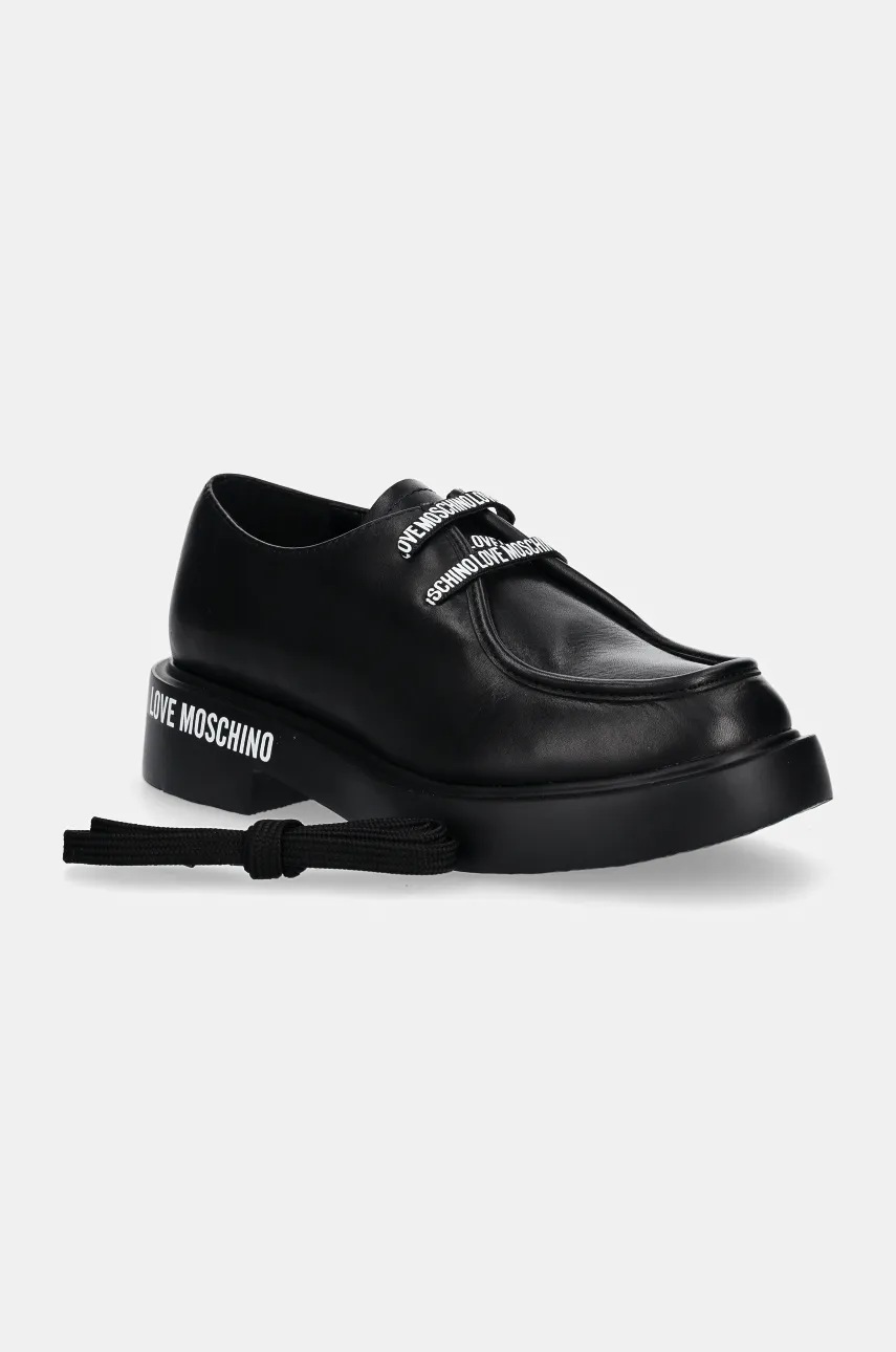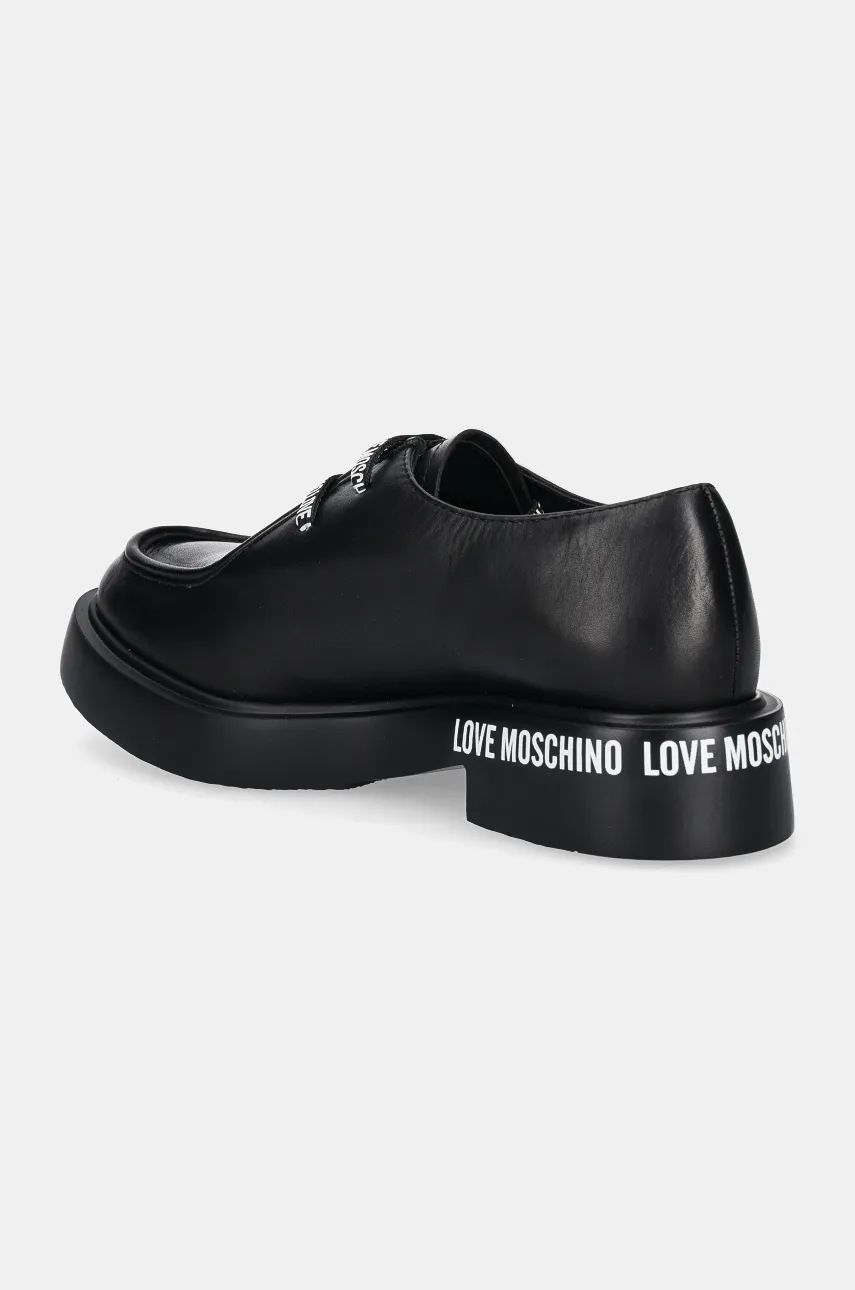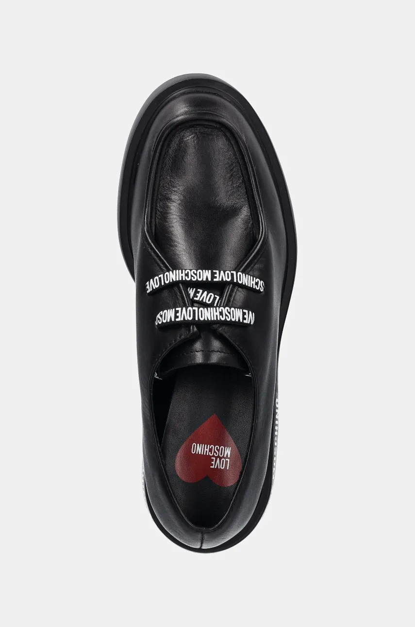 Love Moschino półbuty skórzane damskie kolor czarny na płaskim obcasie JA10414G0LIA0000