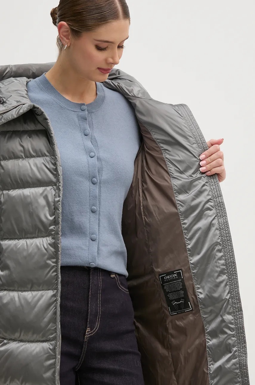 Geox kurtka puchowa damska kolor srebrny przejściowa W4626G-T3154-F9822