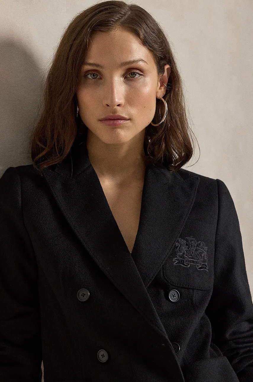 Polo Ralph Lauren marynarka z domieszką wełny kolor czarny dwurzędowa gładka 211947956