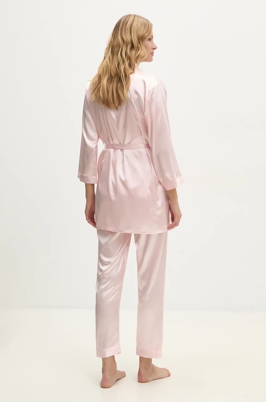 Answear Lab komplet piżamowy kolor różowy satynowa