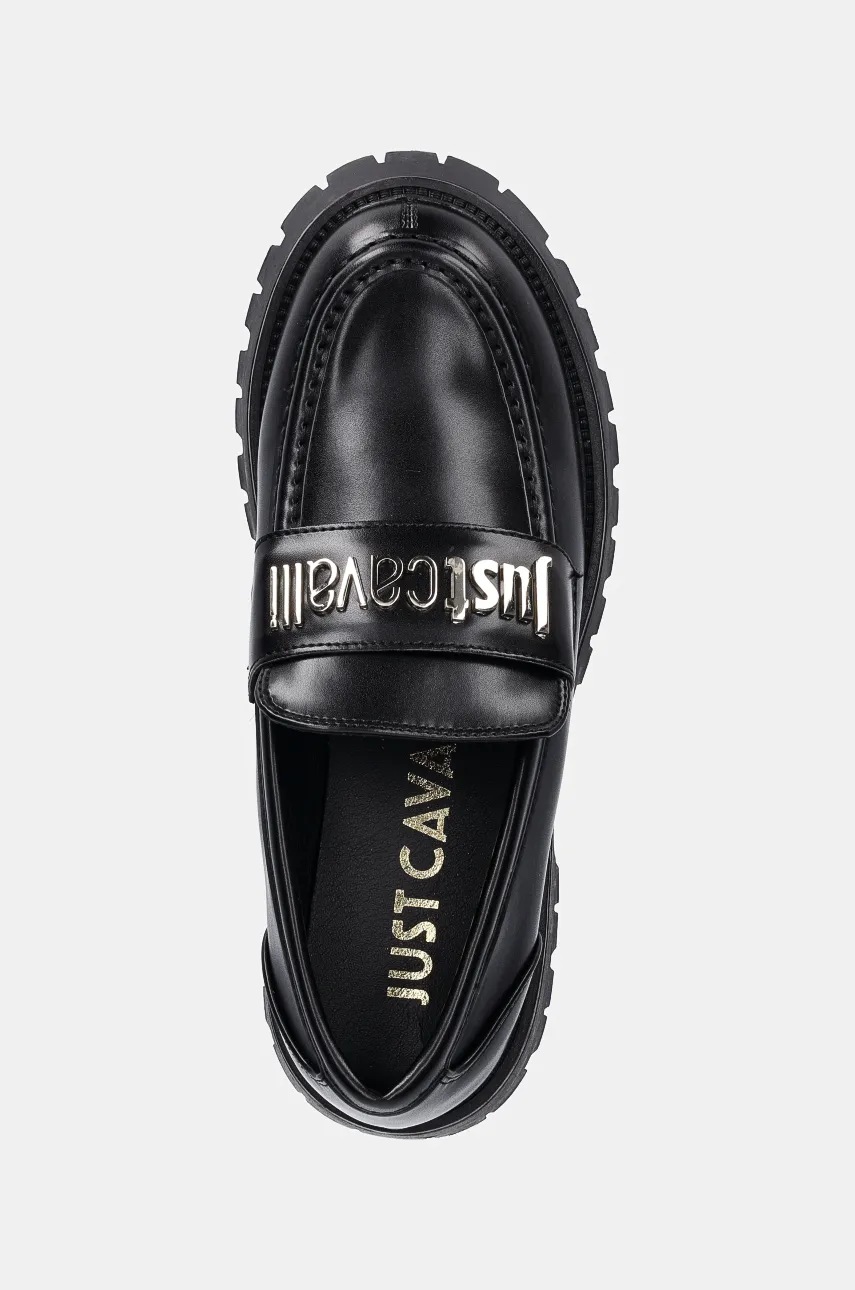 Just Cavalli mokasyny damskie kolor czarny na płaskim obcasie 77RA3S82