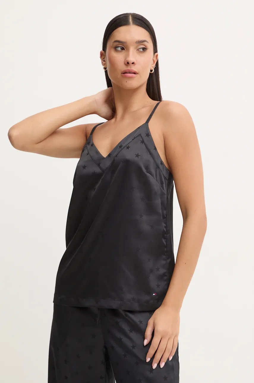 Tommy Hilfiger piżama damska kolor czarny satynowa UW0UW05559