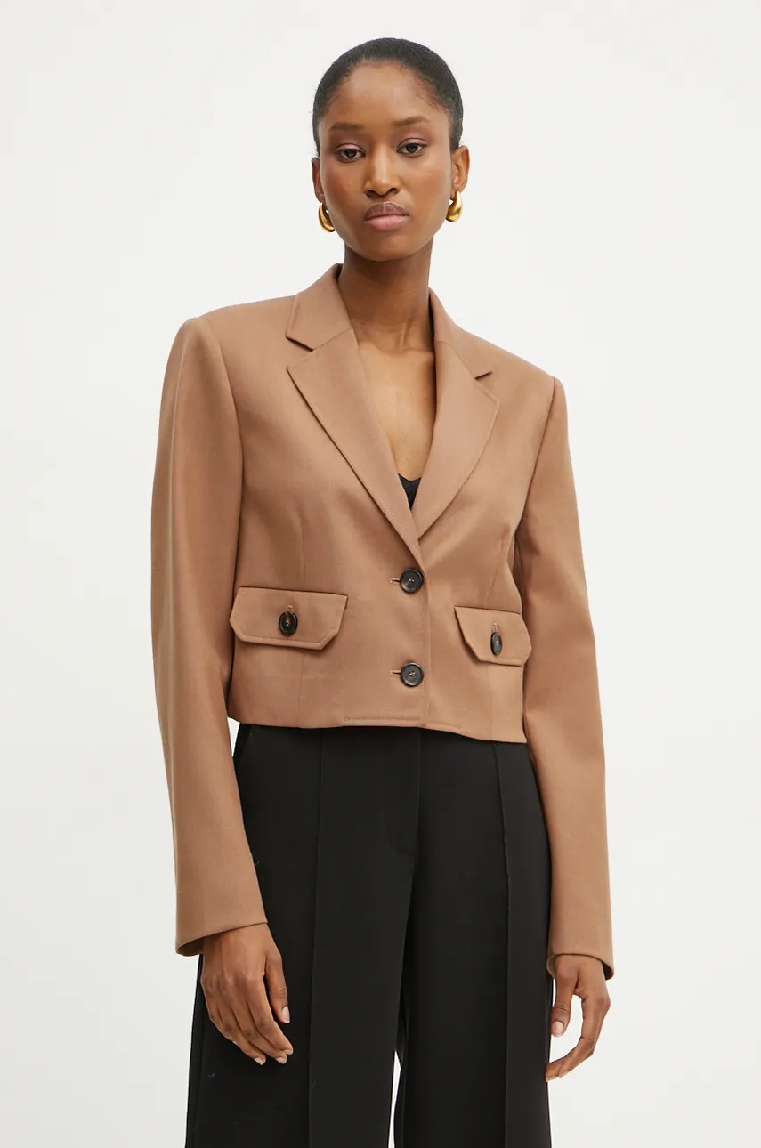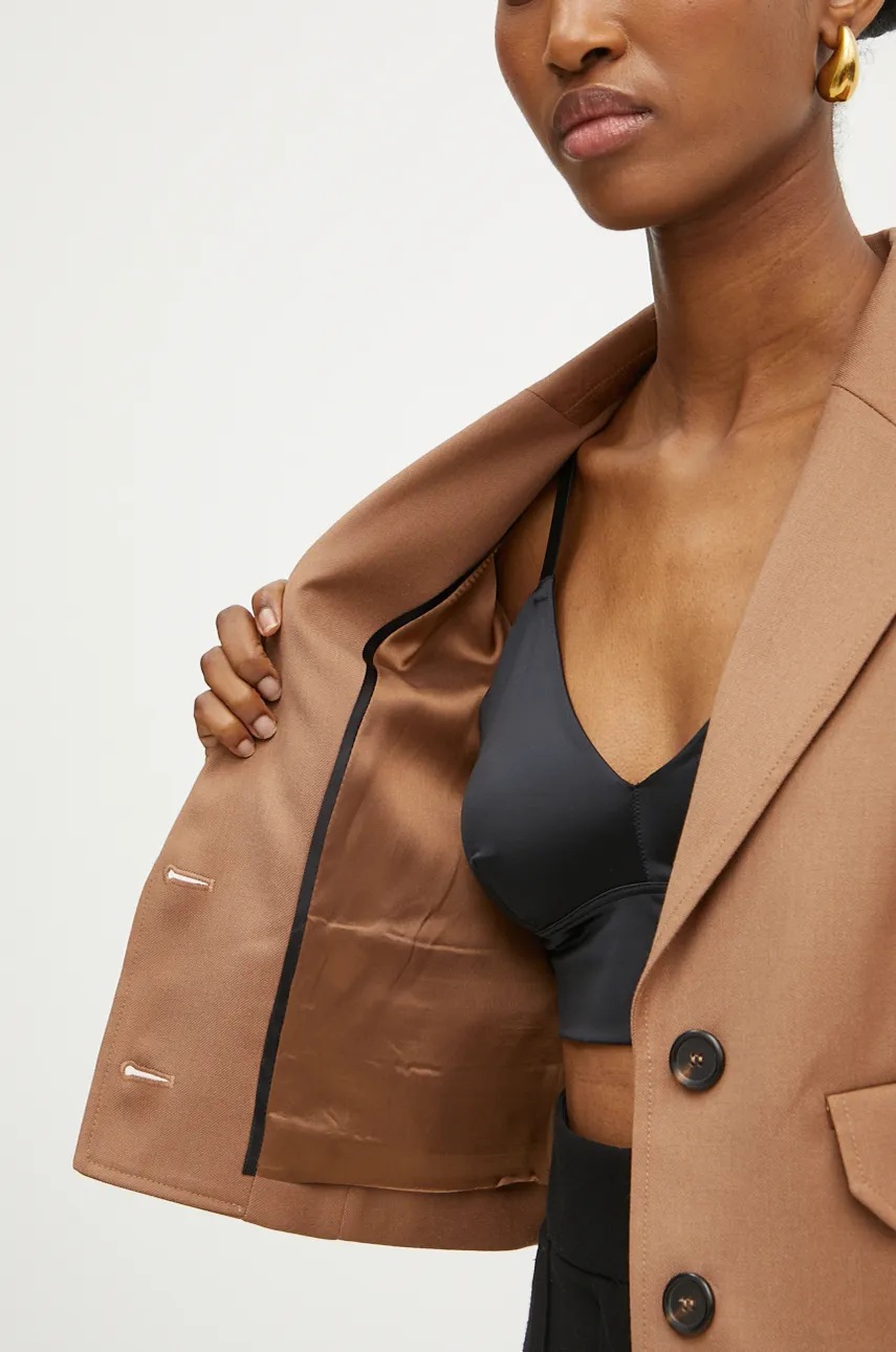 Pinko marynarka kolor brązowy jednorzędowa gładka 104337 A1B3