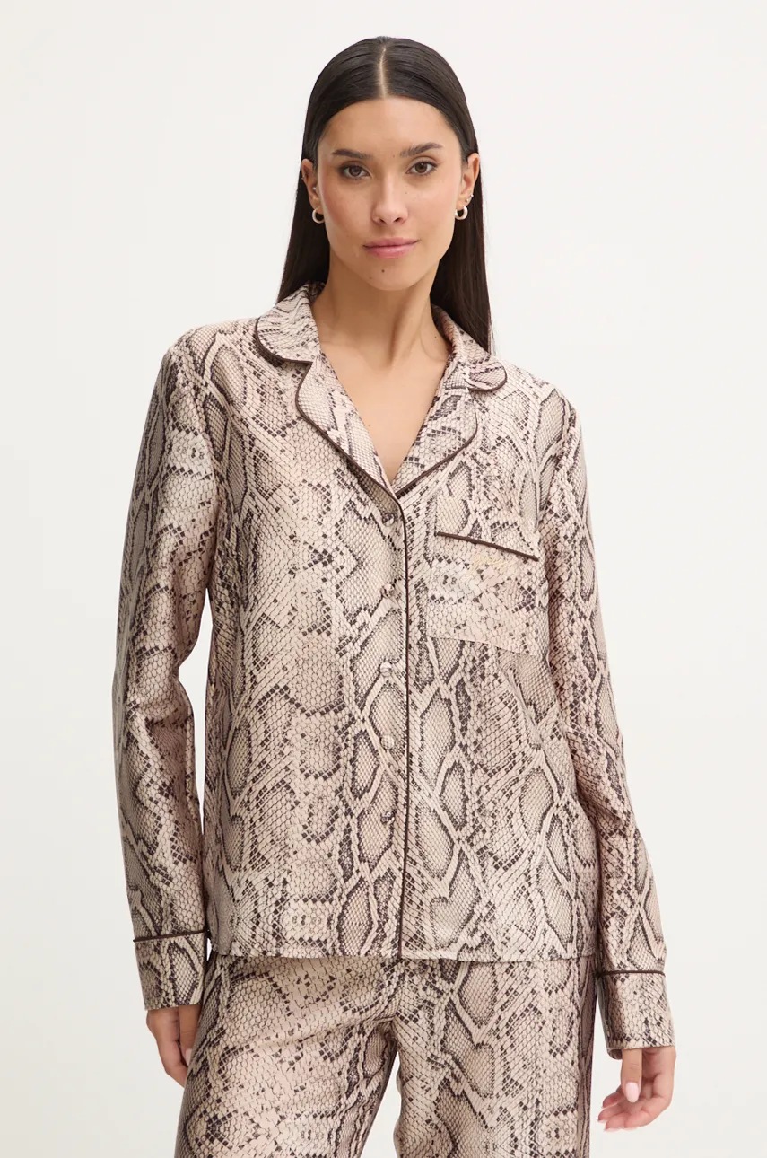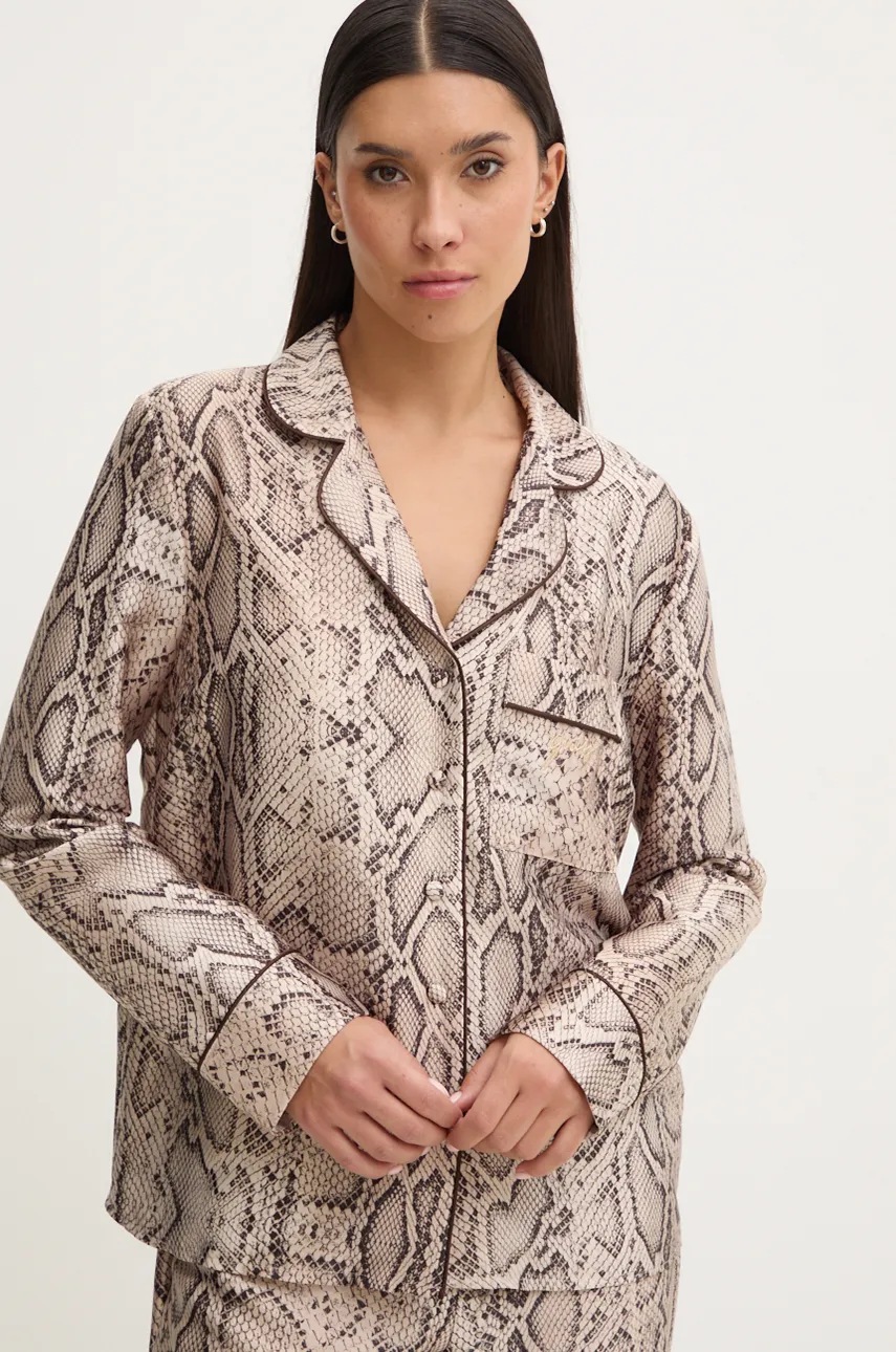 Guess piżama damska kolor beżowy satynowa O4BX06.WEFC2