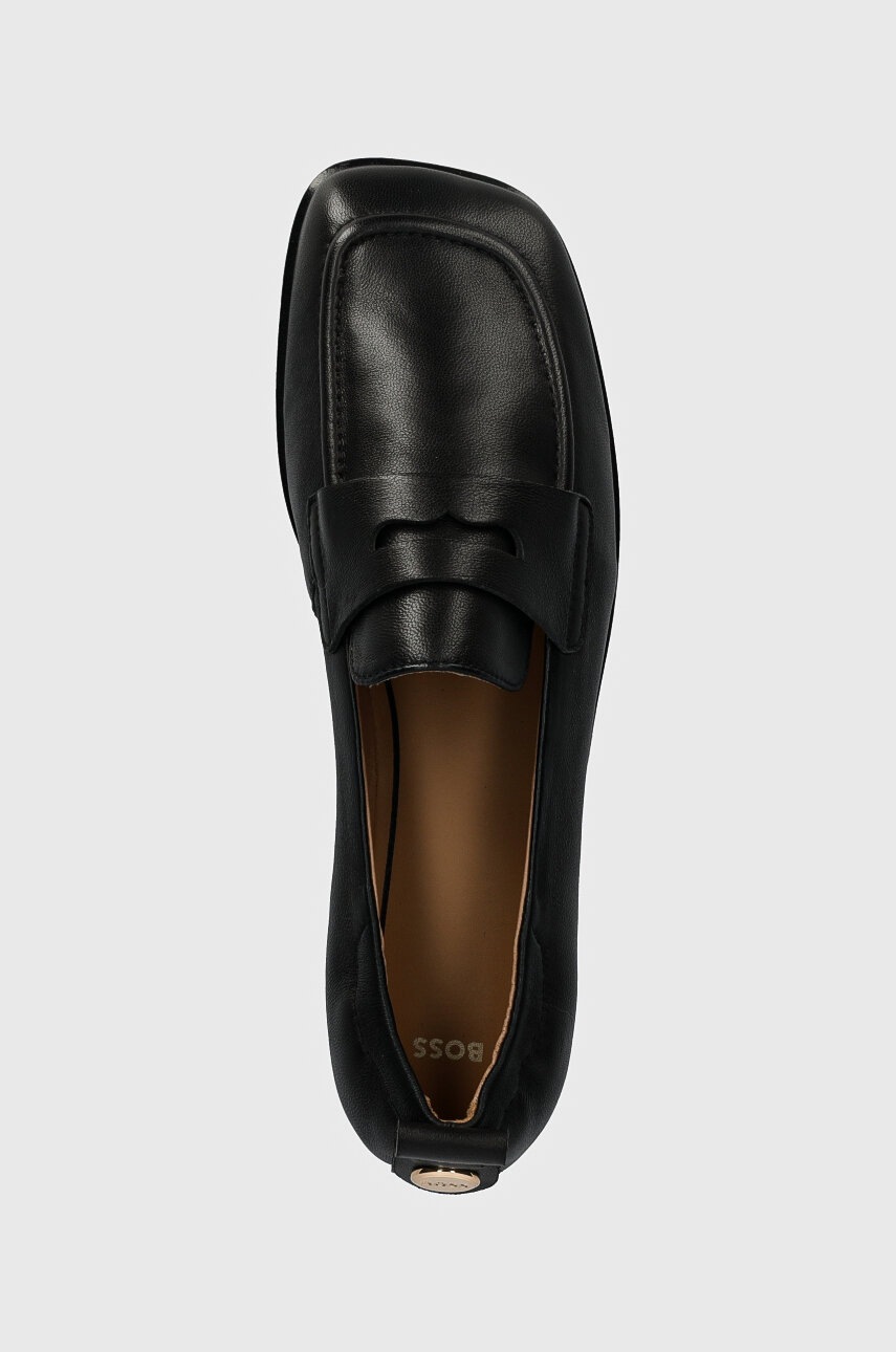 BOSS mokasyny skórzane Avylin damskie kolor czarny na płaskim obcasie 50523498