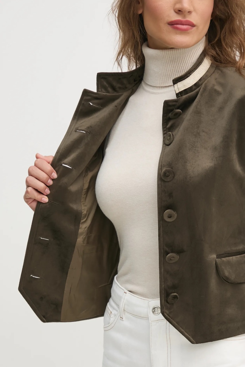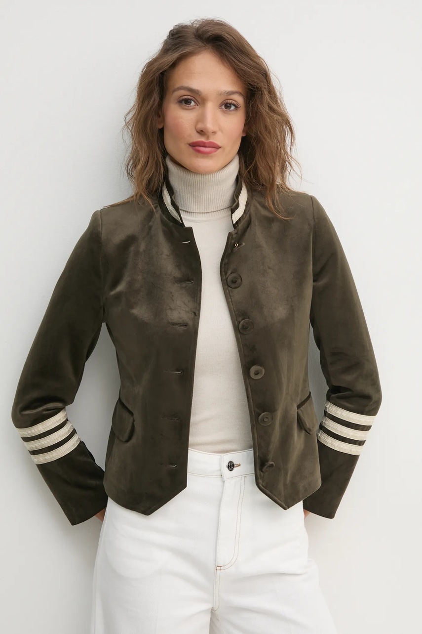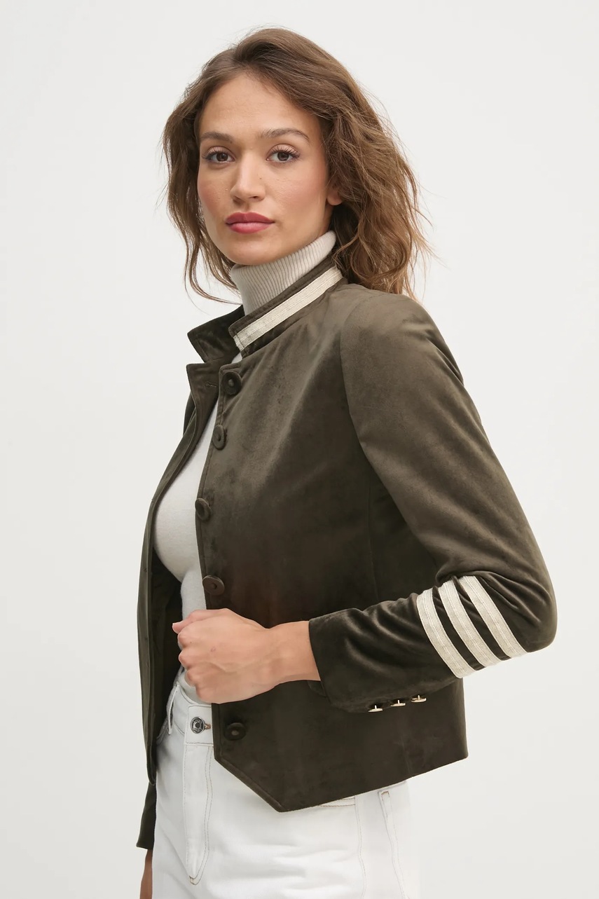 La Petite Française marynarka welurowa PFVIOLON kolor zielony jednorzędowa PFVIOLON