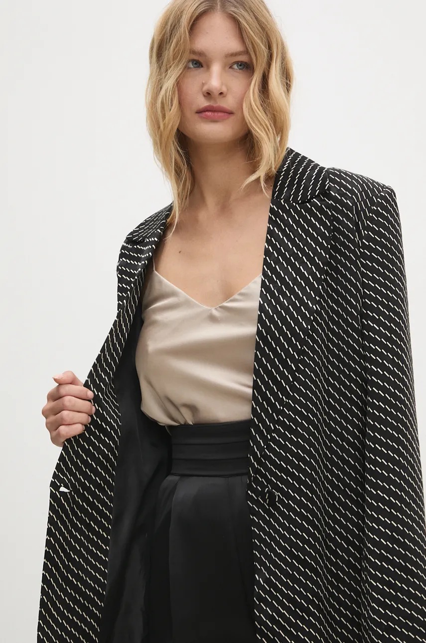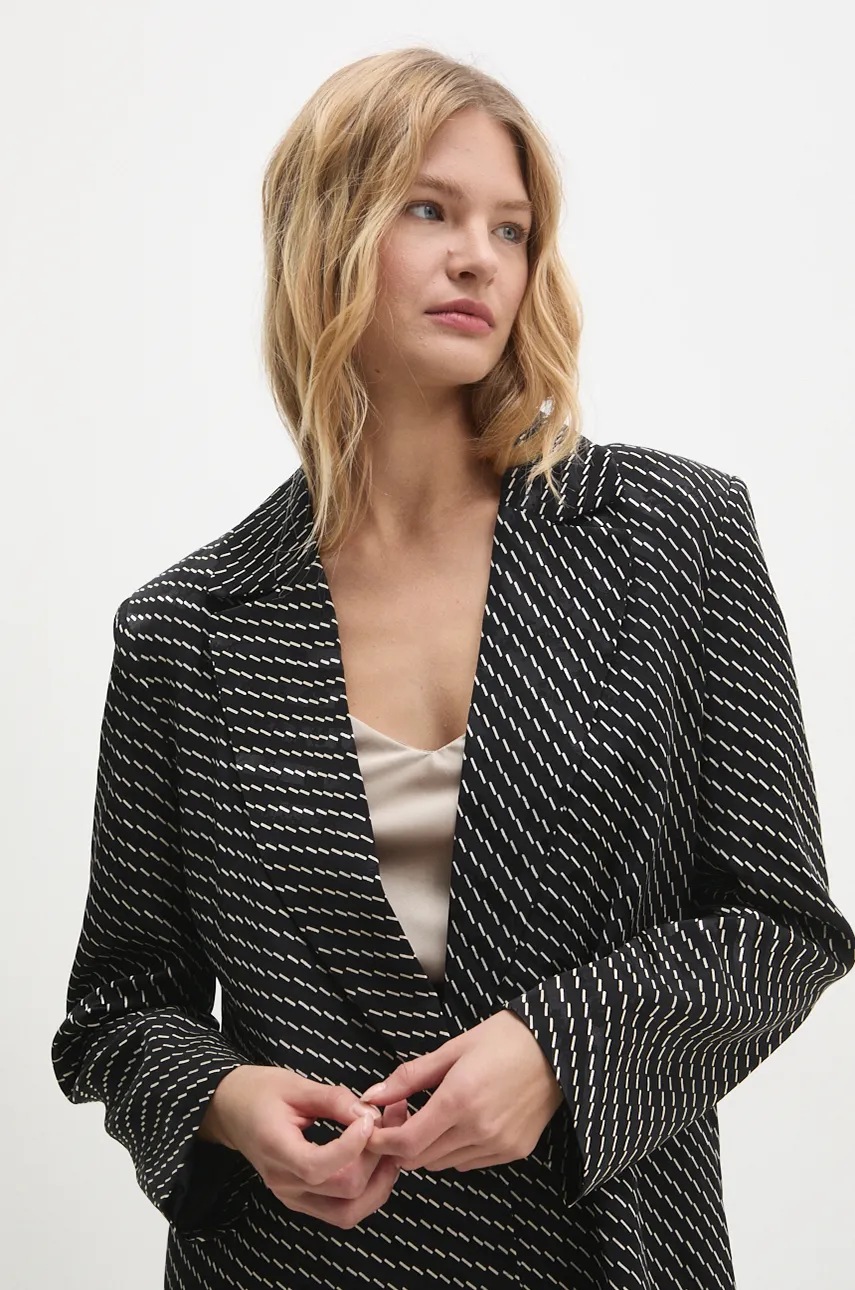 Answear Lab marynarka kolor czarny jednorzędowa wzorzysta