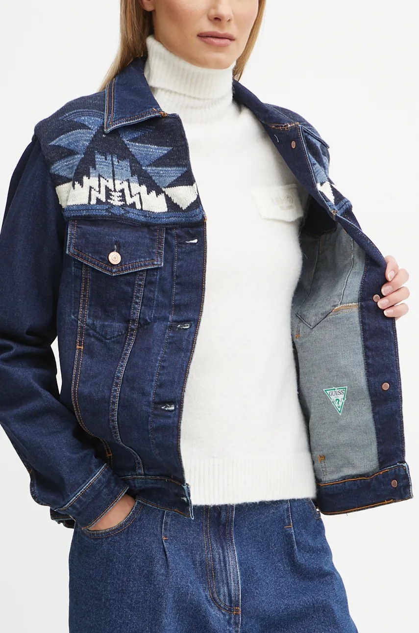 Guess kurtka jeansowa damska kolor granatowy przejściowa W4BN71 D5GN5