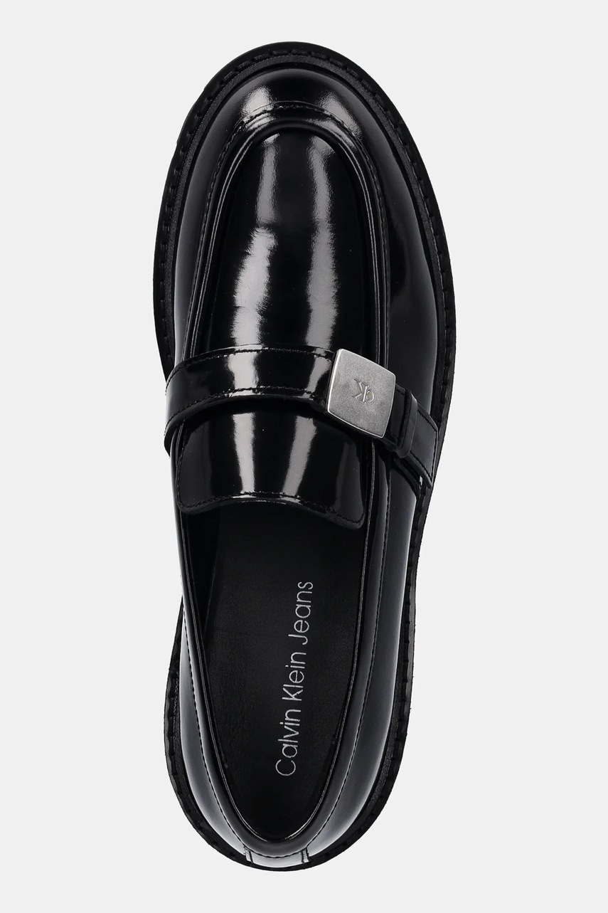 Calvin Klein Jeans mokasyny skórzane FLATFORM SHOE DRIVER HDW damskie kolor czarny na płaskim obcasie YW0YW01657