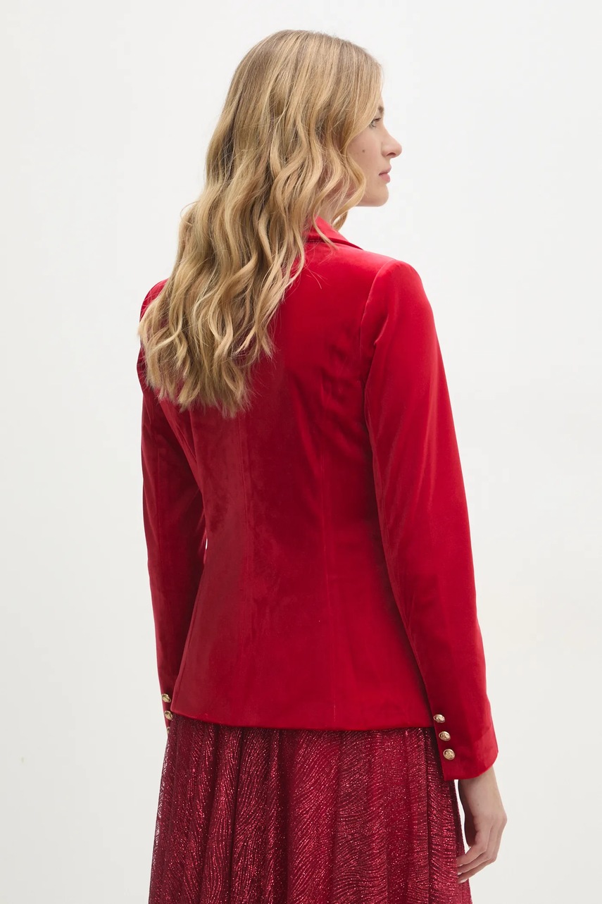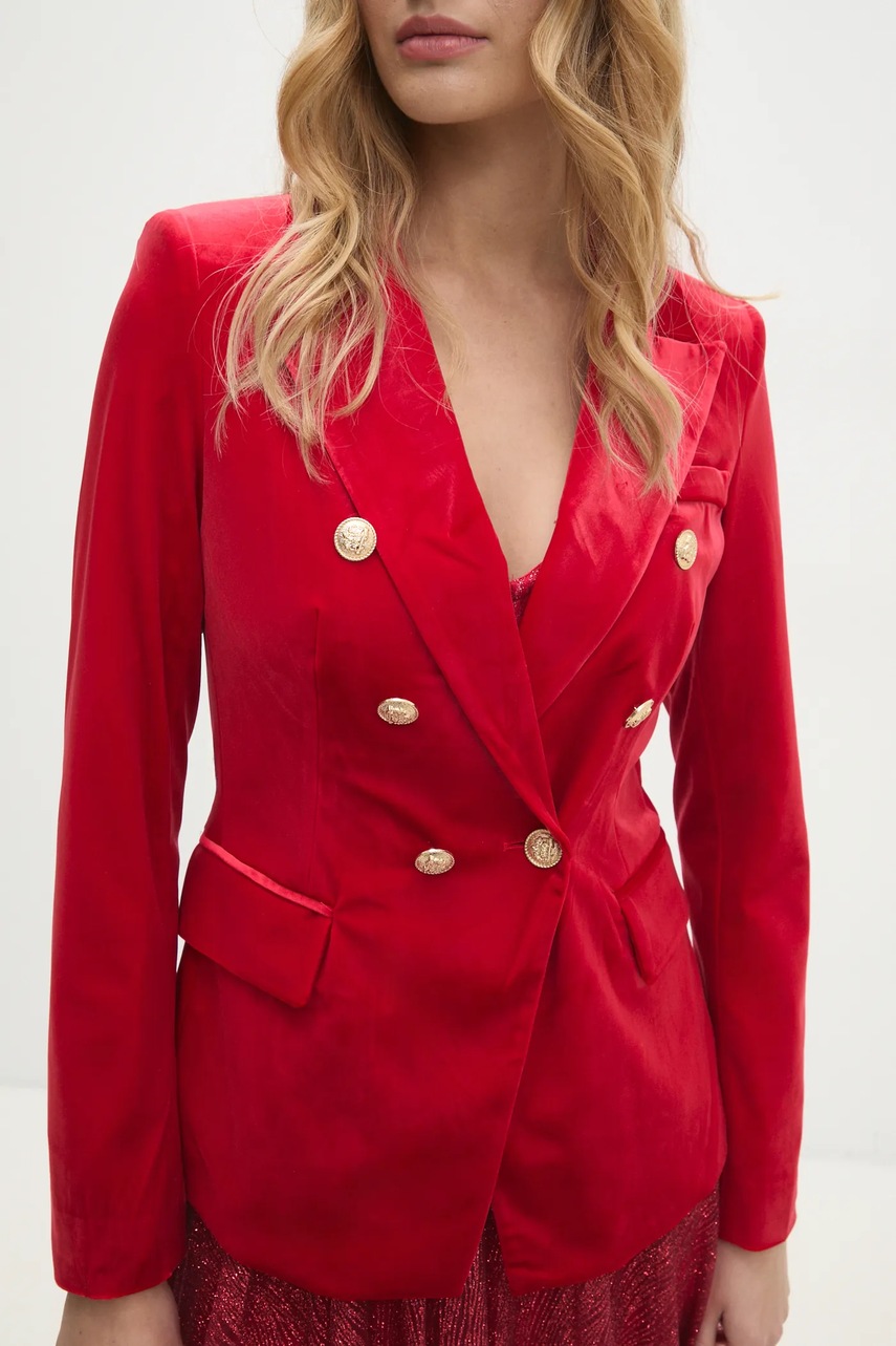 Answear Lab marynarka welurowa kolor czerwony dwurzędowa gładka
