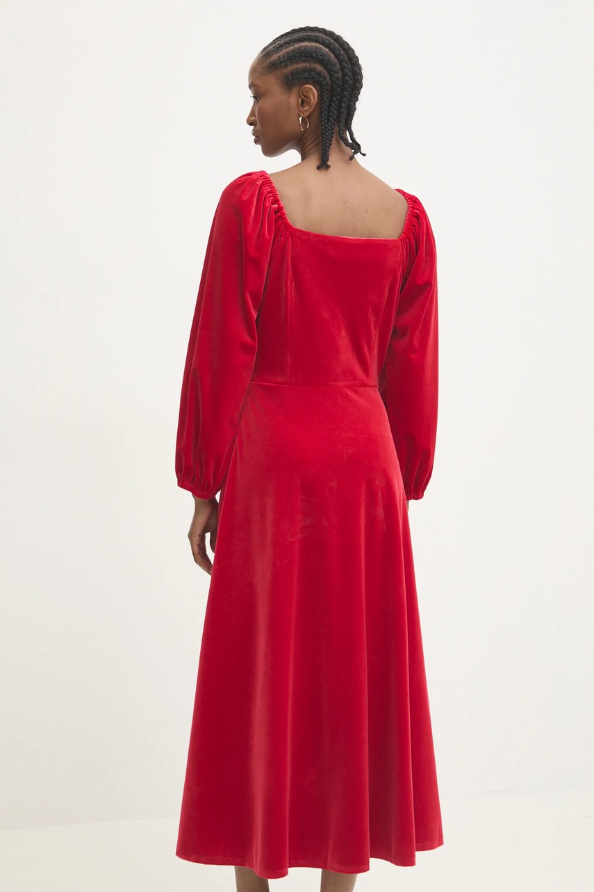 Answear Lab sukienka welurowa kolor czerwony midi rozkloszowana