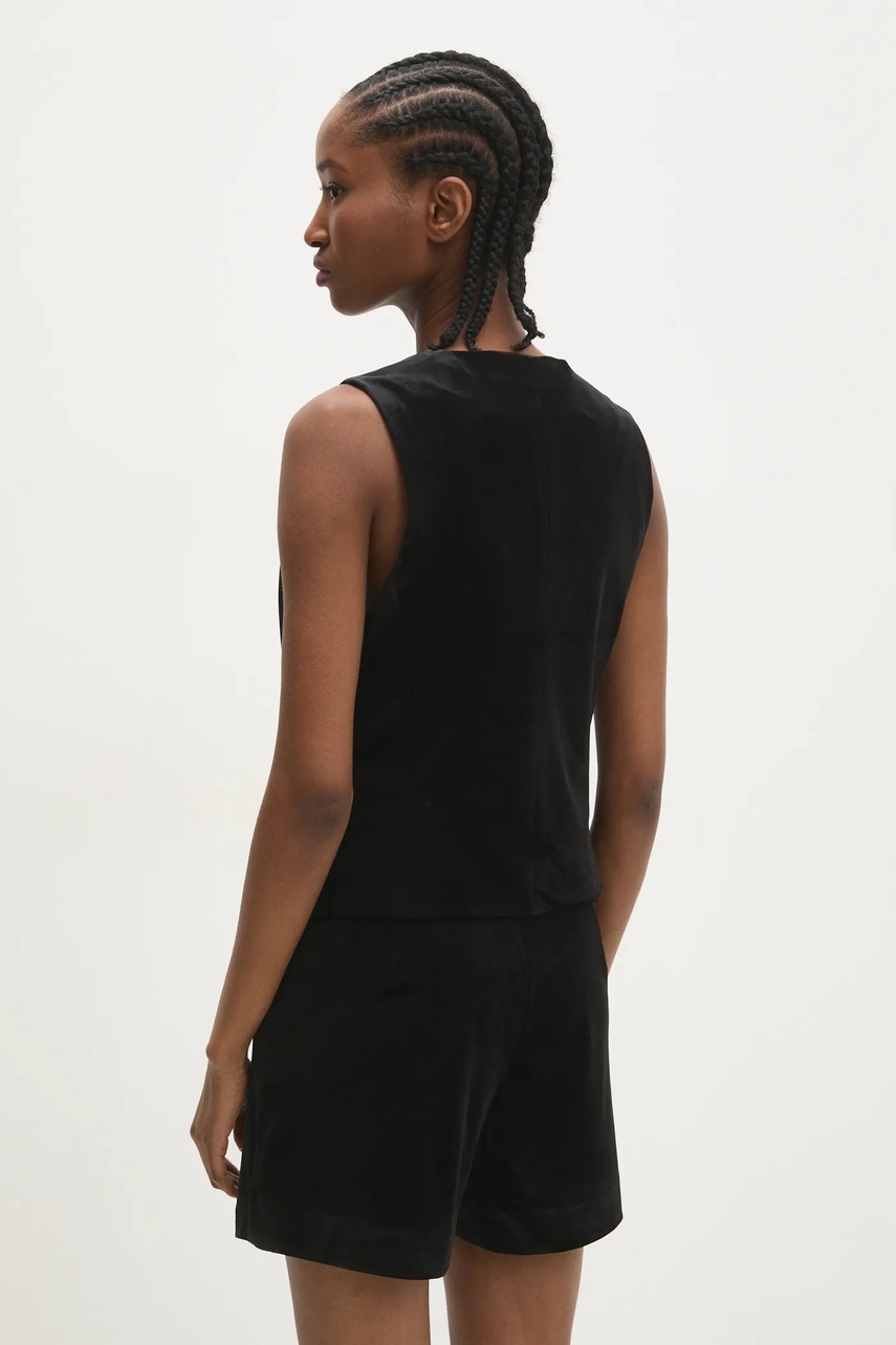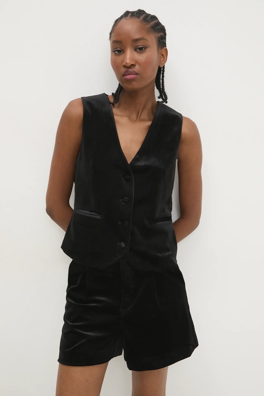 Answear Lab kamizelka welurowa kolor czarny jednorzędowa