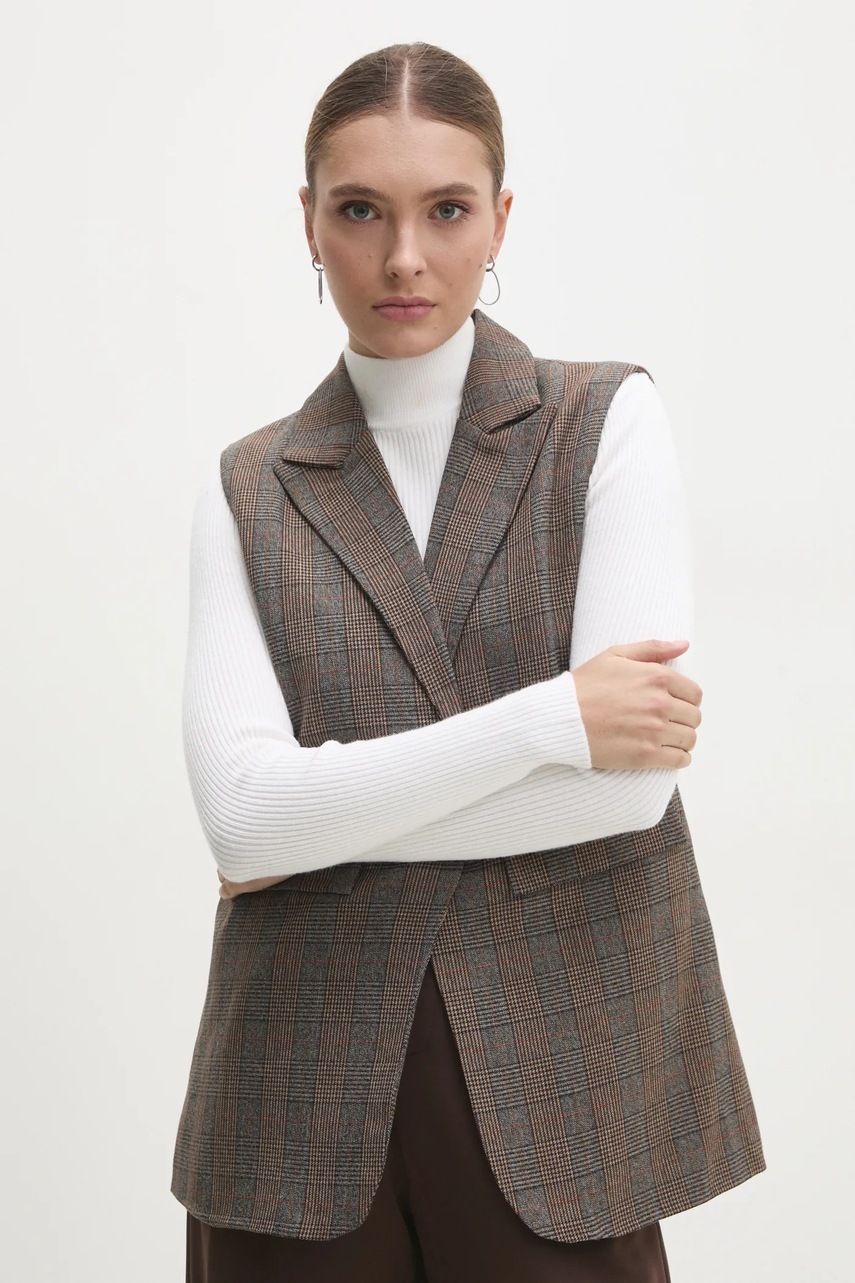 Answear Lab kamizelka kolor brązowy jednorzędowa