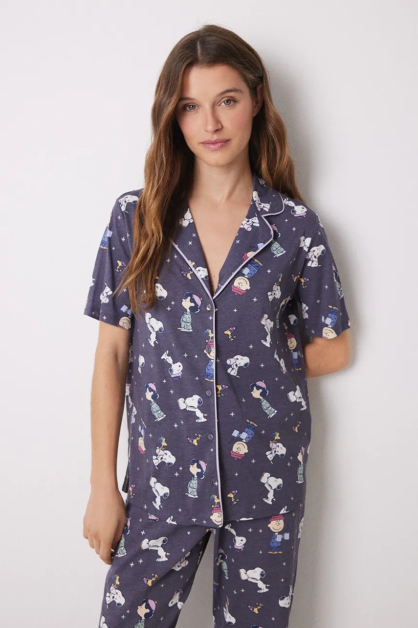 women'secret piżama bawełniana Snoopy kolor niebieski bawełniana 3138558