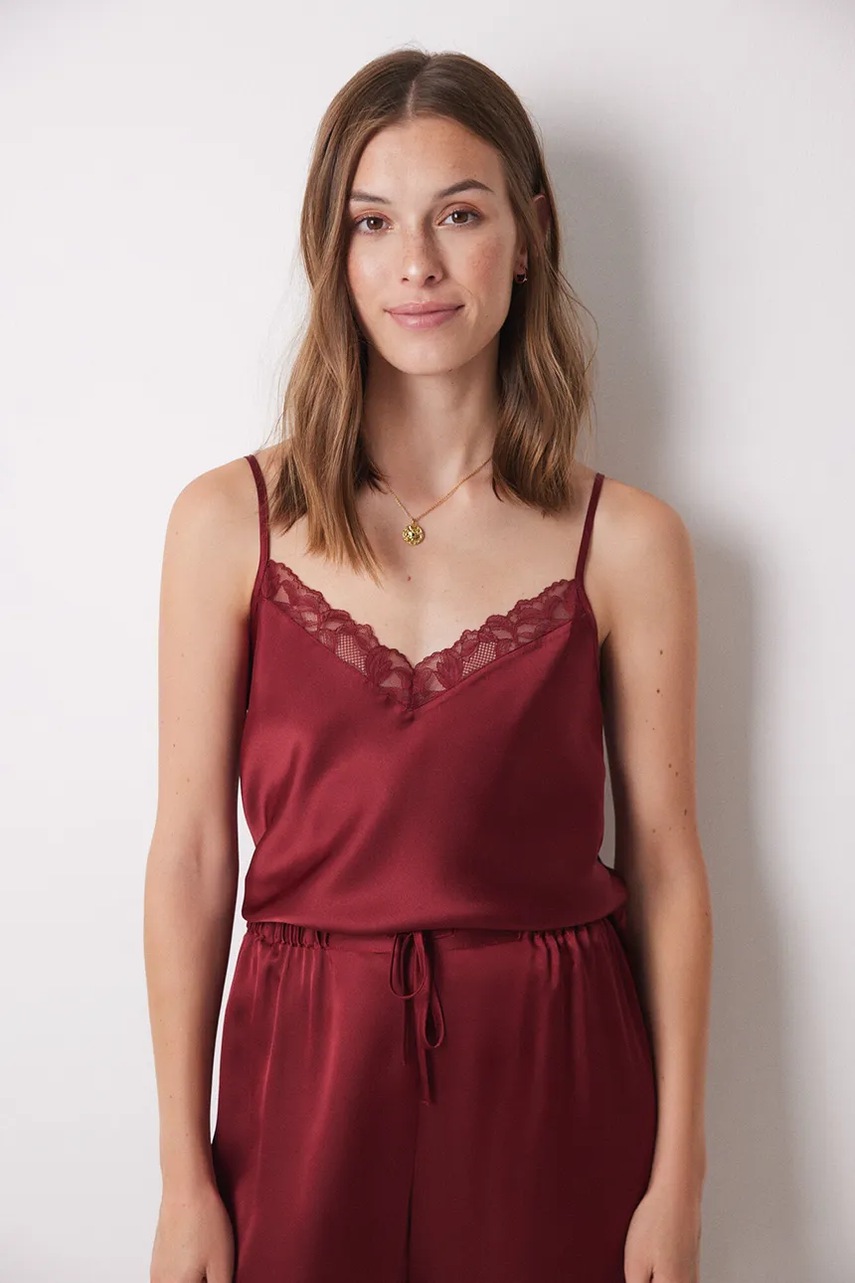 women'secret piżama SENSE LIMITED EDITION damska kolor bordowy satynowa 2548219