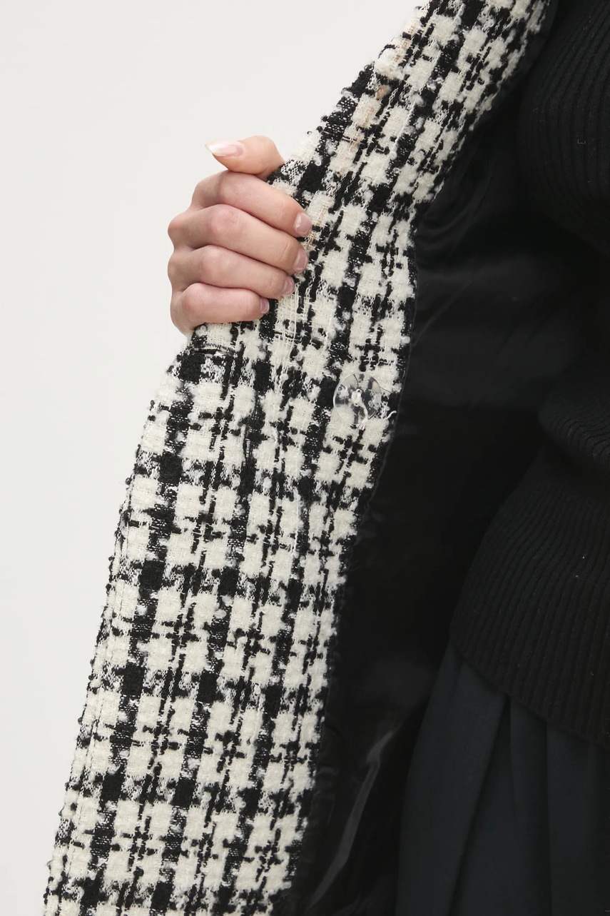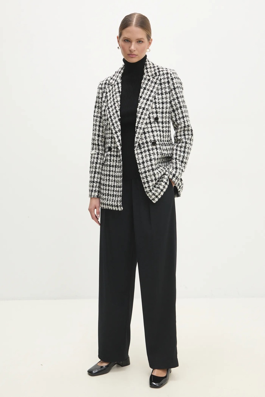 Answear Lab marynarka z wełną kolor czarny dwurzędowa wzorzysta