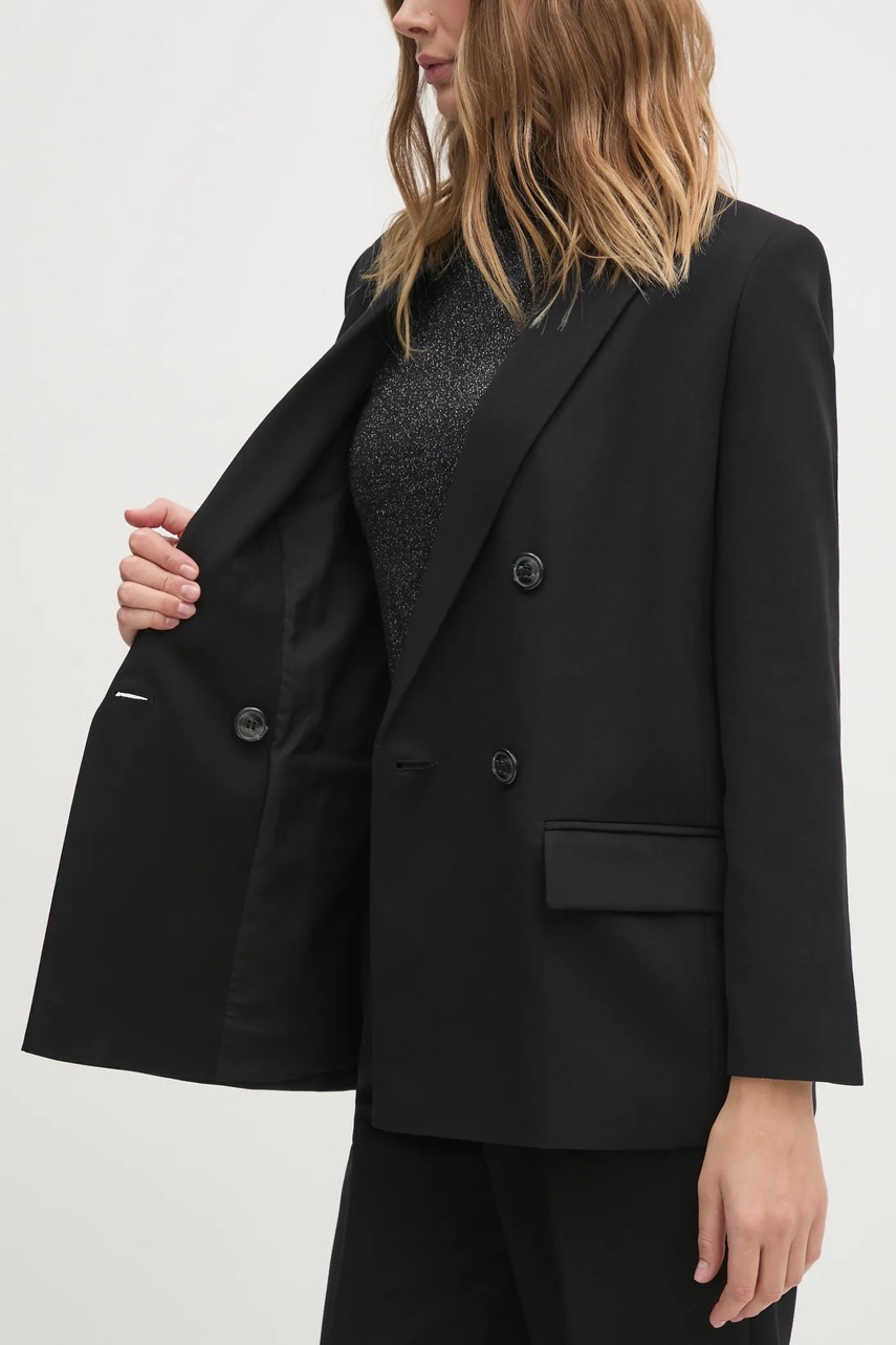 Sisley marynarka kolor czarny dwurzędowa gładka 2ZCWLW02G