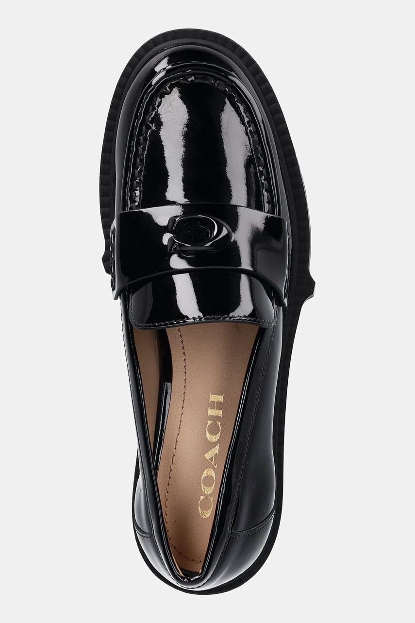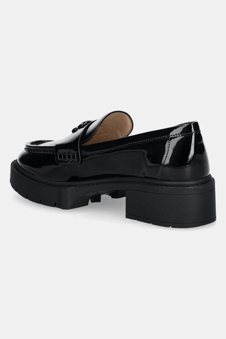 Coach mokasyny skórzane Leah Patent damskie kolor czarny na płaskim obcasie CM752