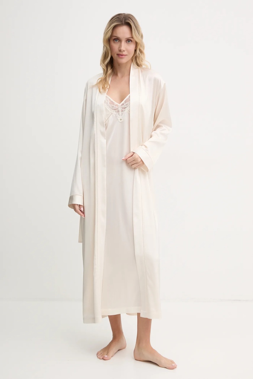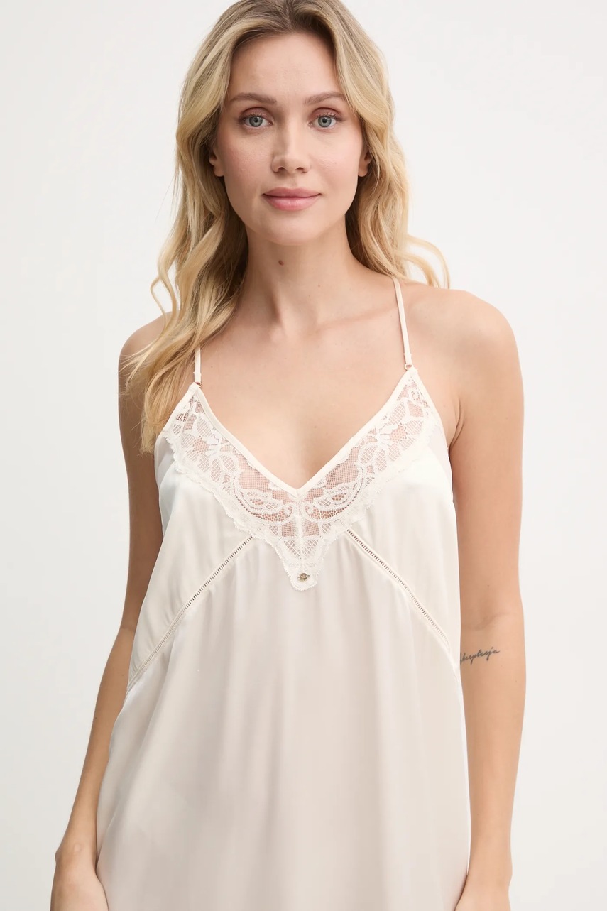 BOSS koszulka nocna damska kolor beżowy satynowa 50535767